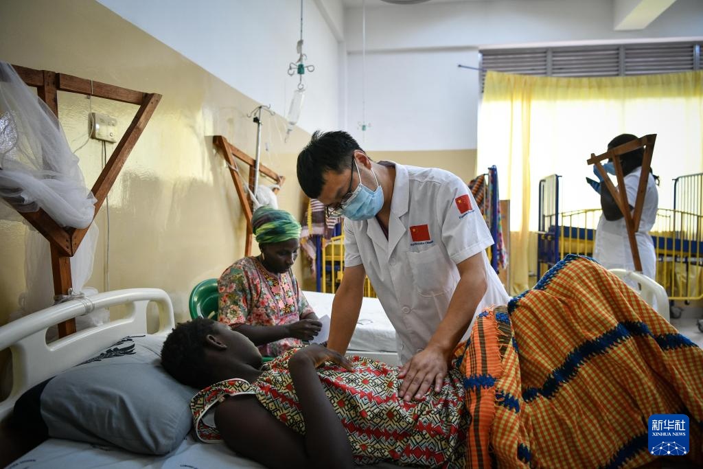 7月8日,在位于几内亚比绍首都比绍的中几比友谊医院,儿科医生张华在病房检查患者状况。