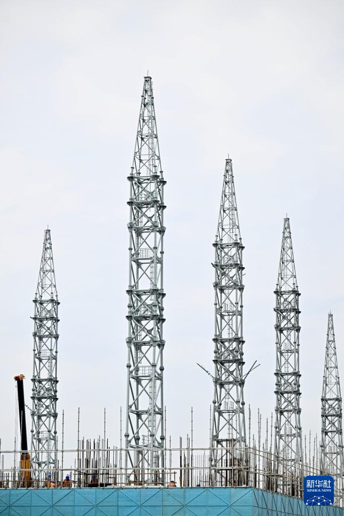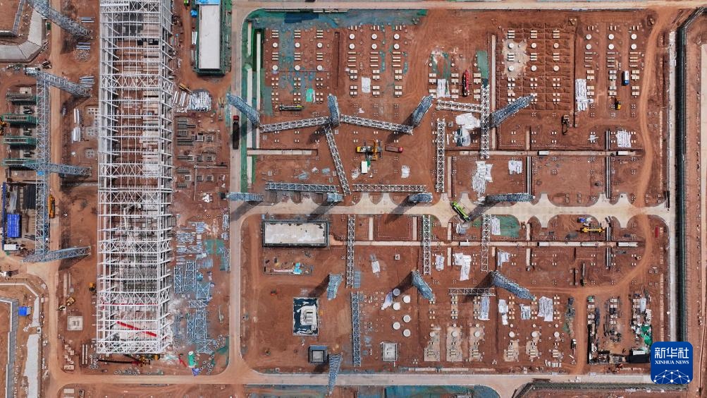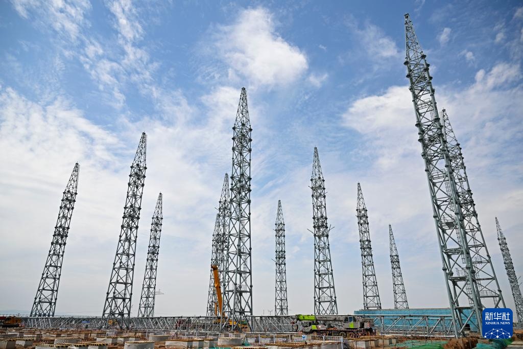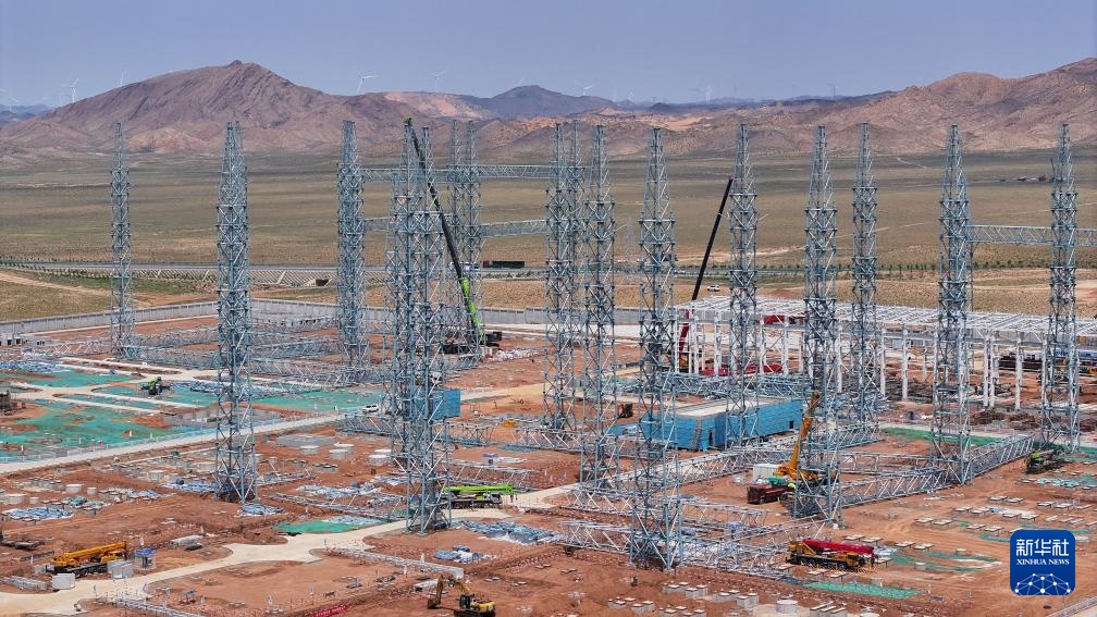 “宁电入湘”中宁换流站施工现场(7月10日摄)。