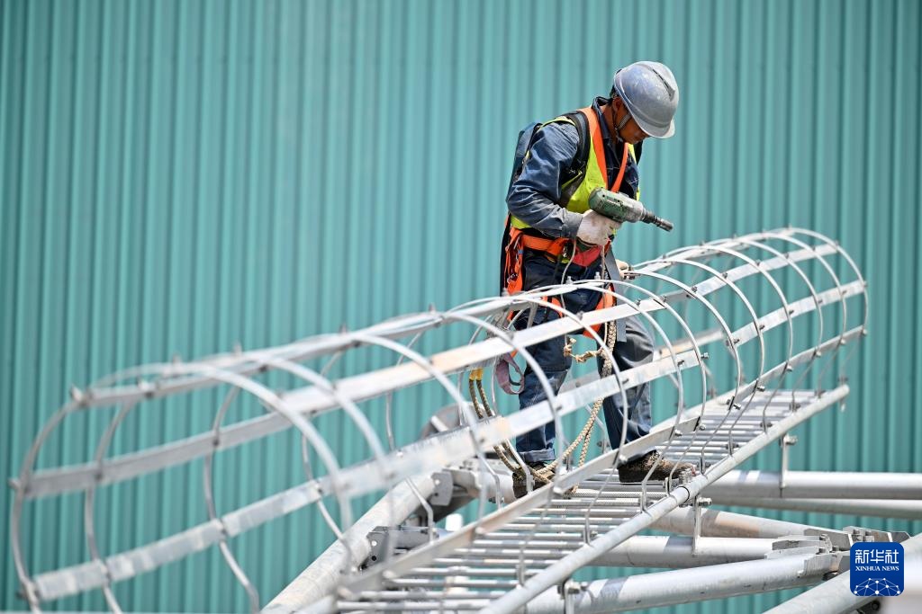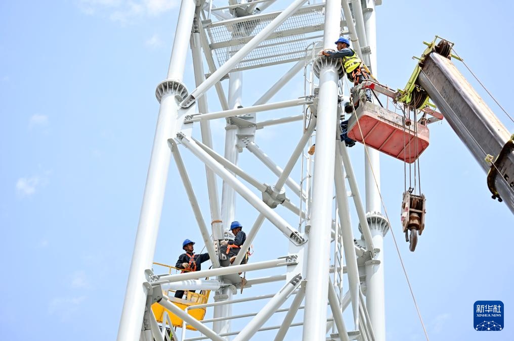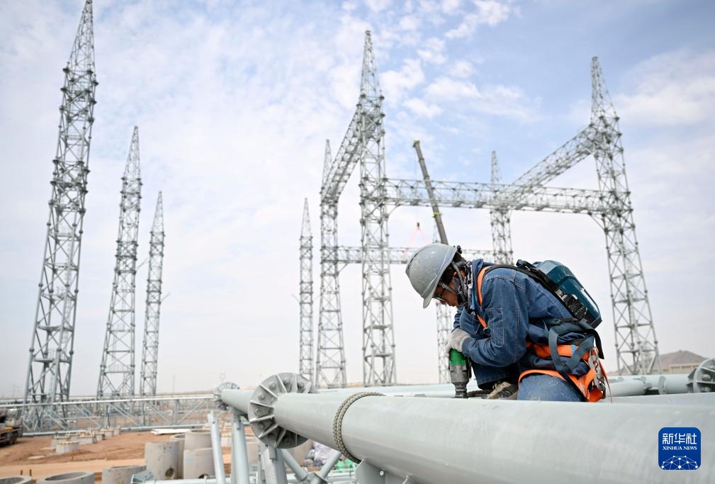 7月10日,国网宁夏电力公司工作人员在“宁电入湘”中宁换流站施工。