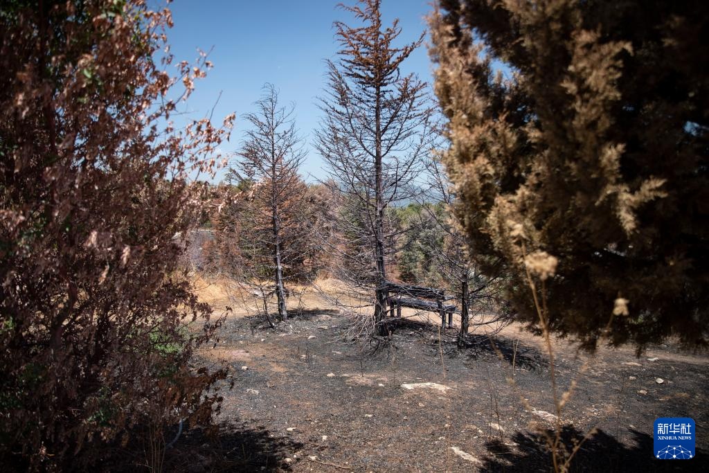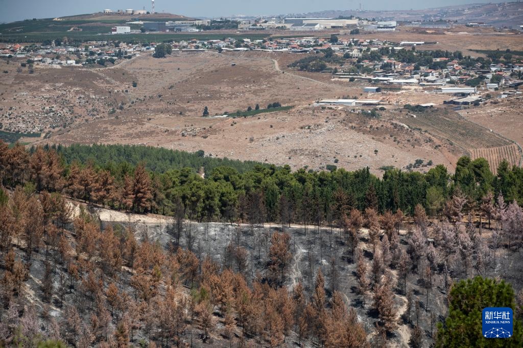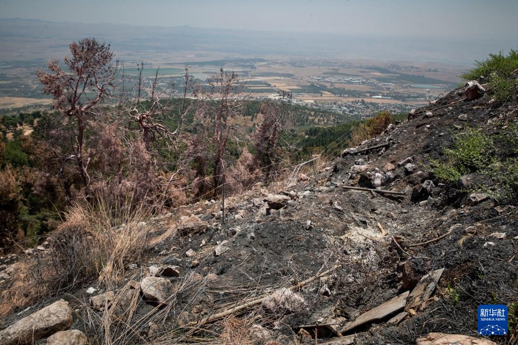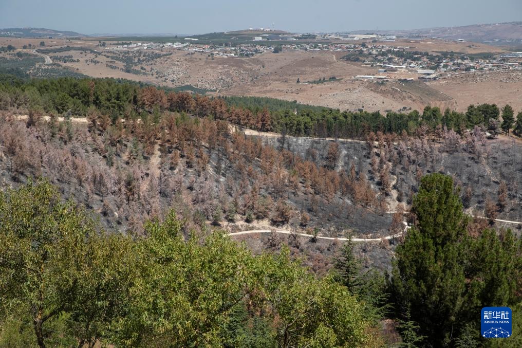 7月10日,以色列北部边境地区的部分森林遭黎巴嫩真主党火箭弹袭击所引起的山火焚毁。
