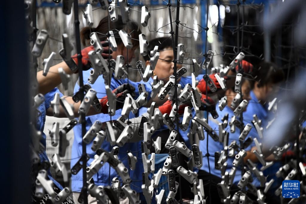 7月9日,在山东省乐陵市经济开发区亚萨合莱国强五金科技有限公司,技术人员在检测出厂的五金件。