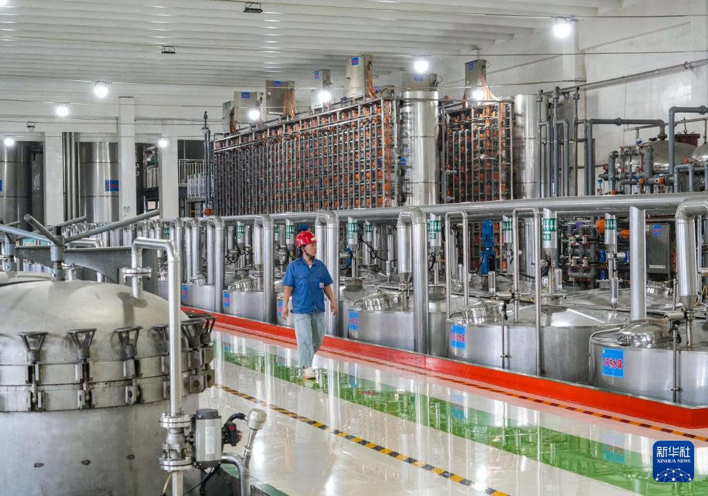 7月9日,在山东省乐陵市经济开发区星光中谷淀粉糖有限公司,工人在麦芽糖自动化生产线巡查。