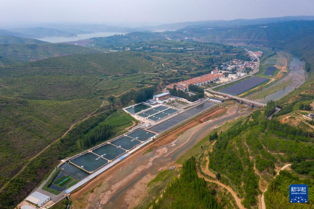 这是位于沁水县张峰村的三文鱼养殖基地(7月10日摄,无人机照片)。