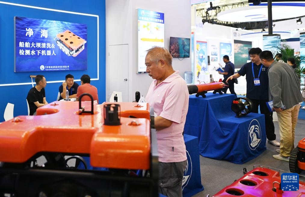 7月11日,与会者在博览会上了解水下机器人。