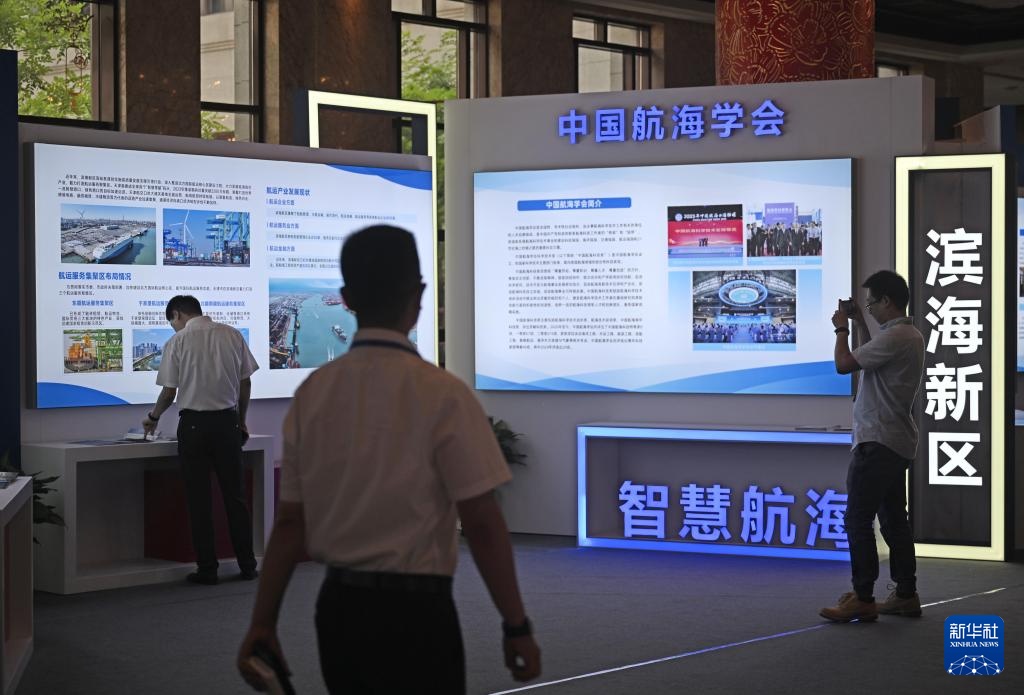 7月11日,与会者在参观活动周期间举办的2024天津国际航运产业博览会。