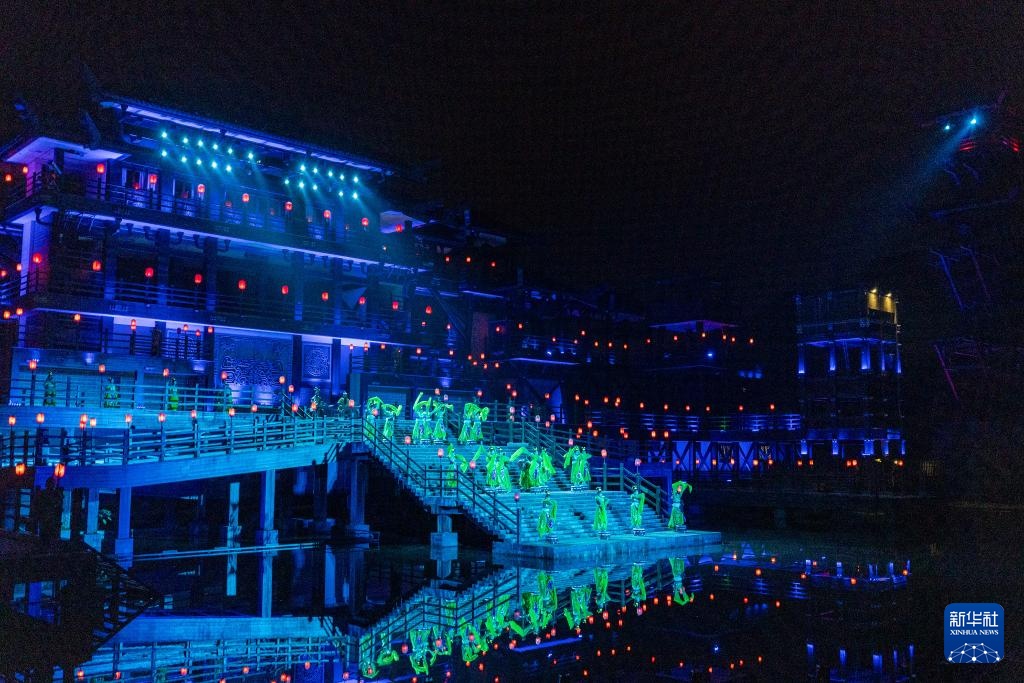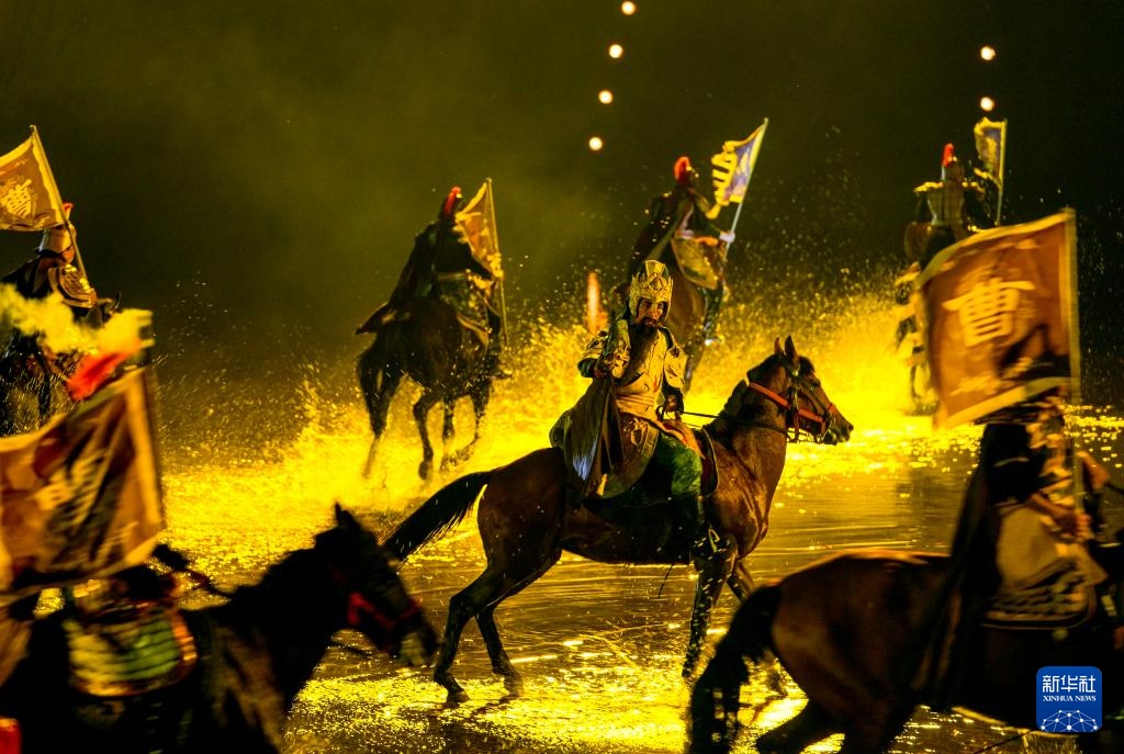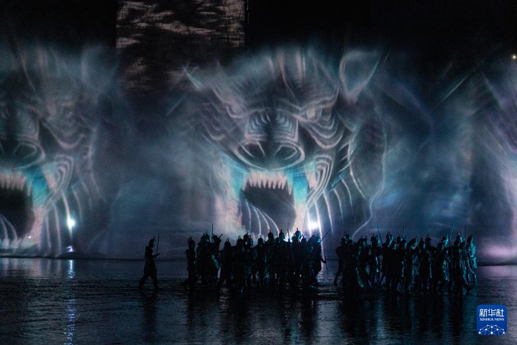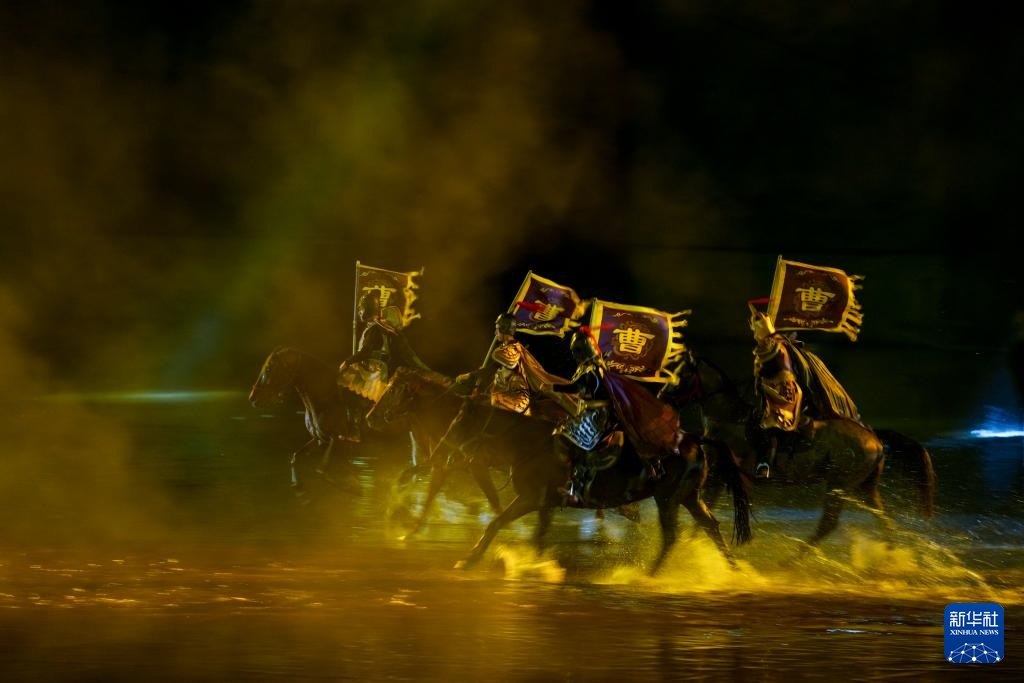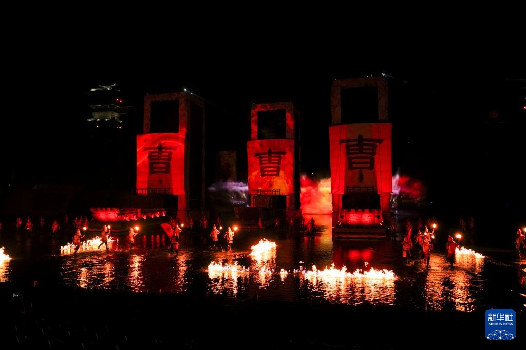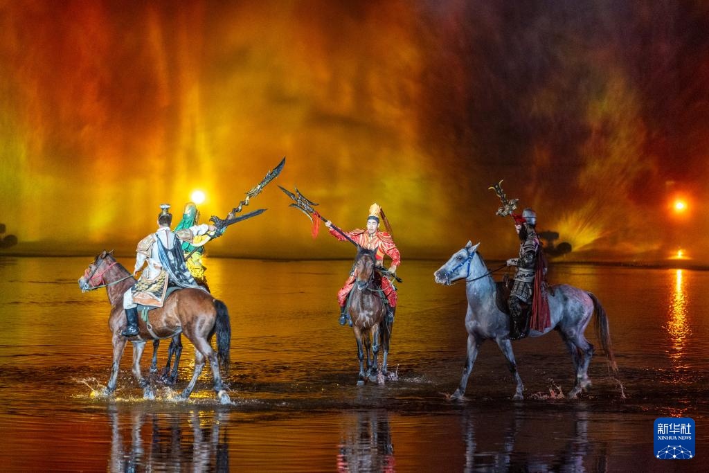这是7月10日在重庆市忠县拍摄的大型山水实景演艺剧《烽烟三国》演出现场。
