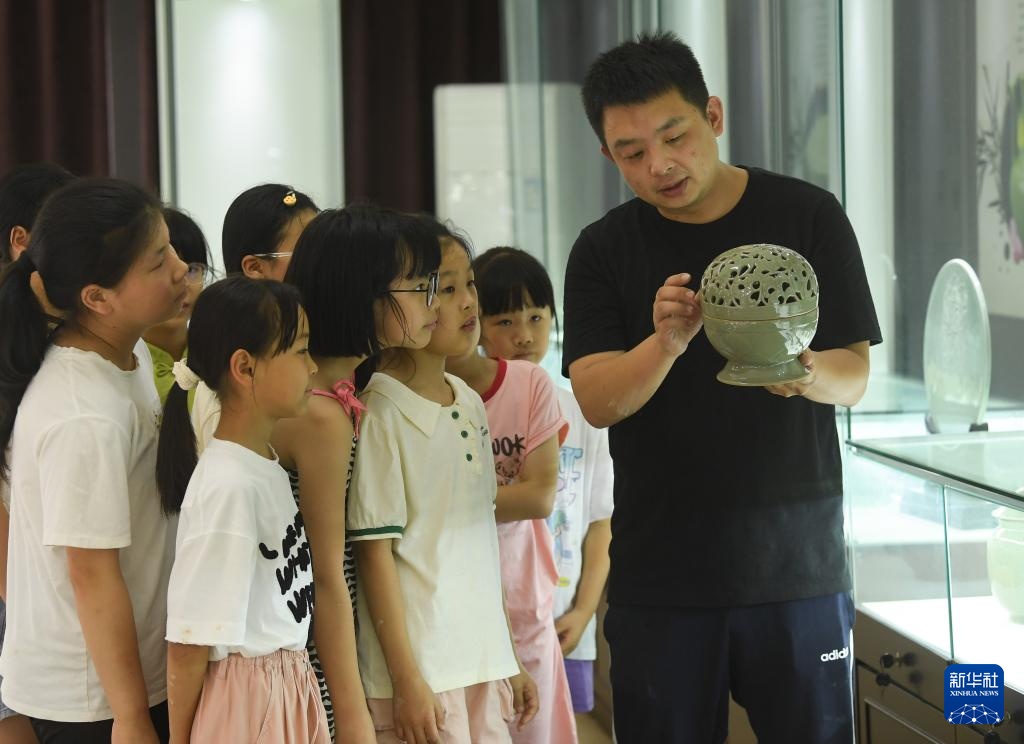 7月11日,谢振威向前来研学的小学生介绍沙埠窑标志性的香炉。