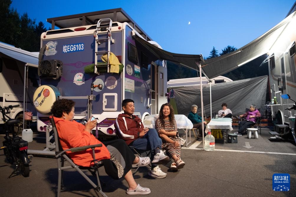 7月11日,游客在兴安国家森林公园房车营地内休息。