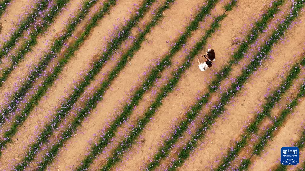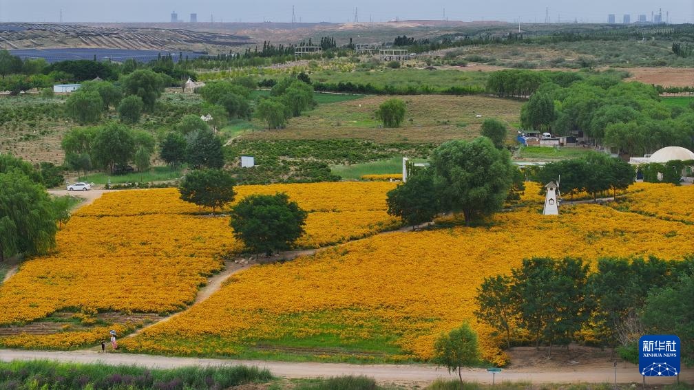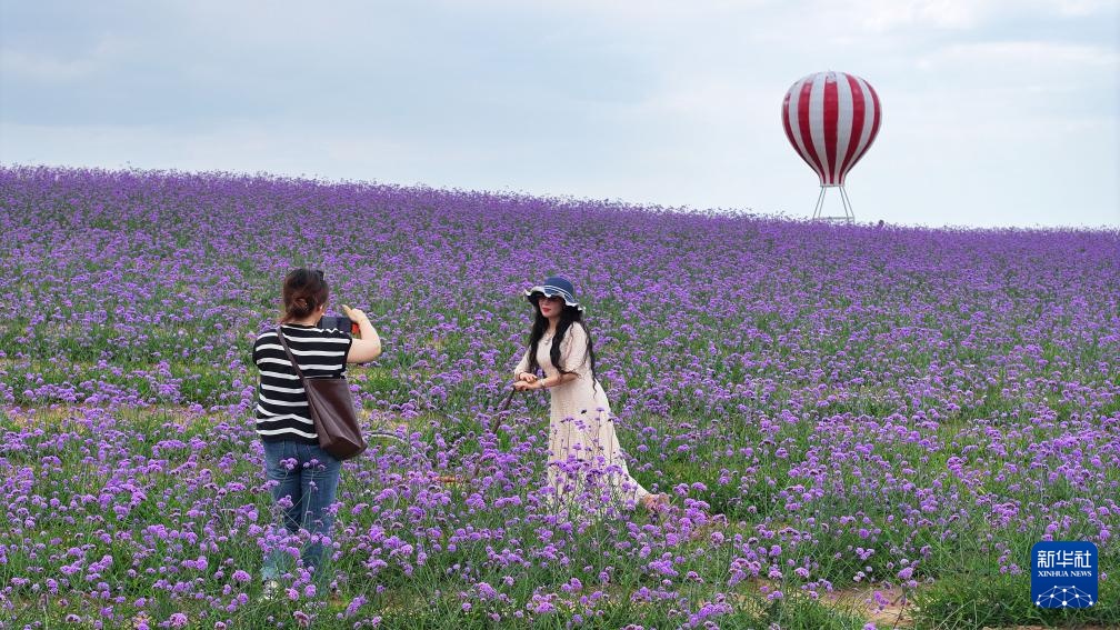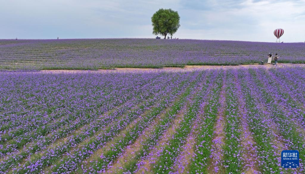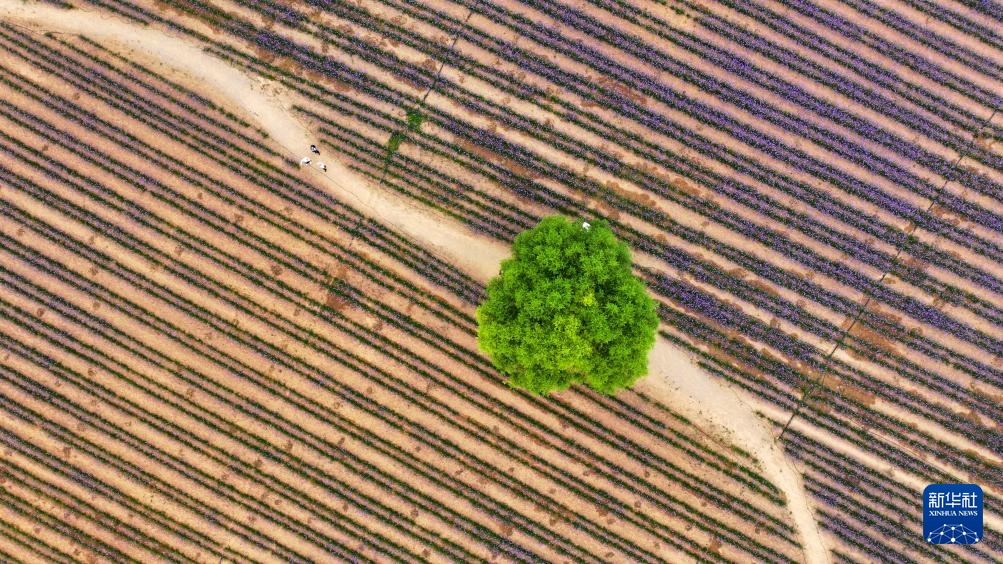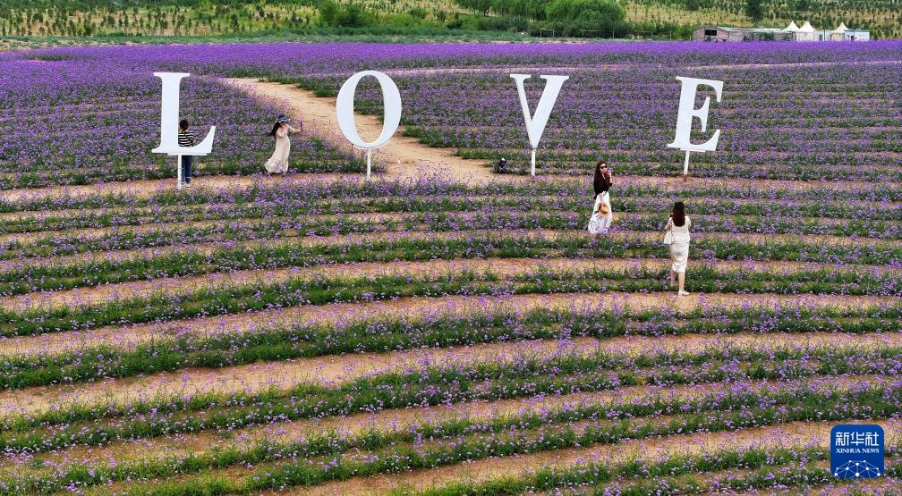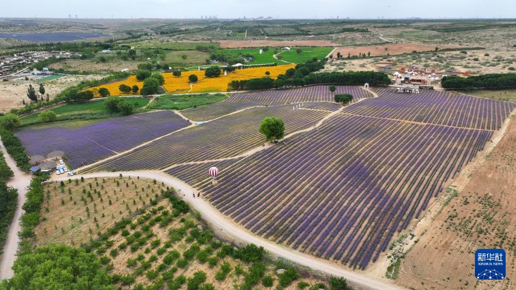 盛夏时节,地处毛乌素沙地边缘的宁夏薰衣草庄园内花卉竞相开放,迎来盛花期。