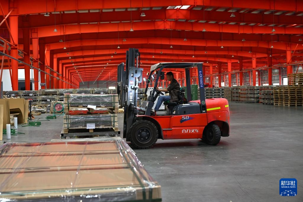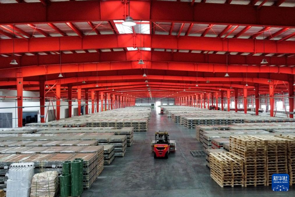 7月12日,在颍上县一家光伏玻璃生产企业,工作人员在车间内忙碌。