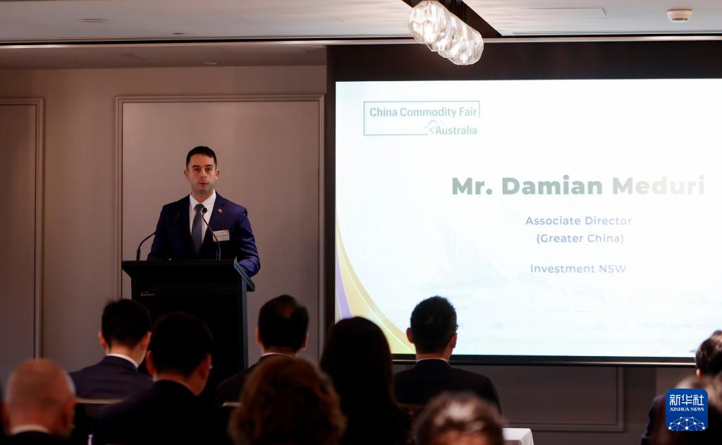 7月12日,在澳大利亚悉尼,澳大利亚新南威尔士州投资局大中华区副总监龖明(英文名达米安·梅杜里)在推介会上致辞。