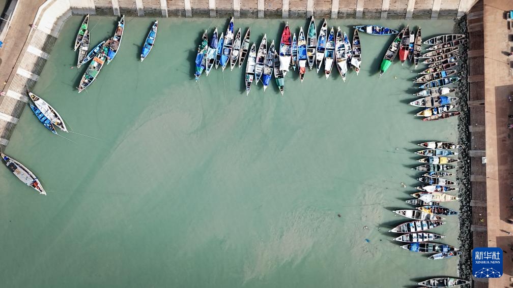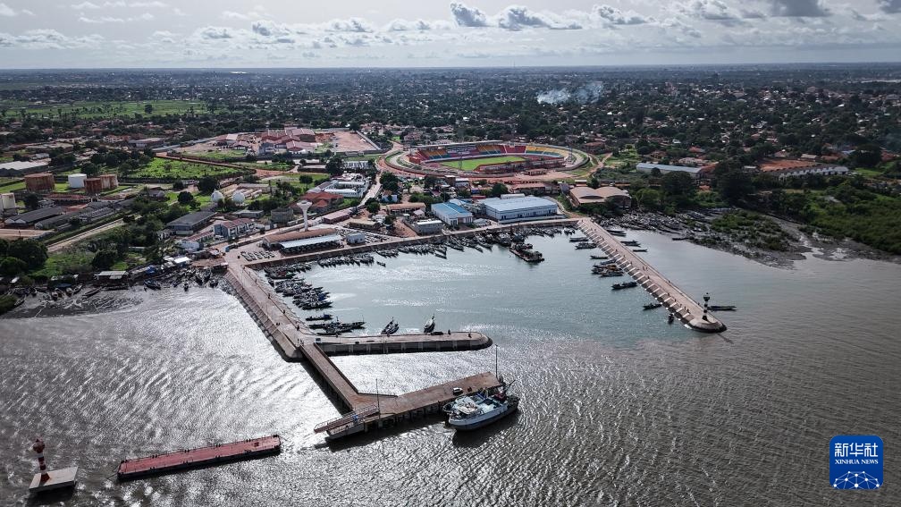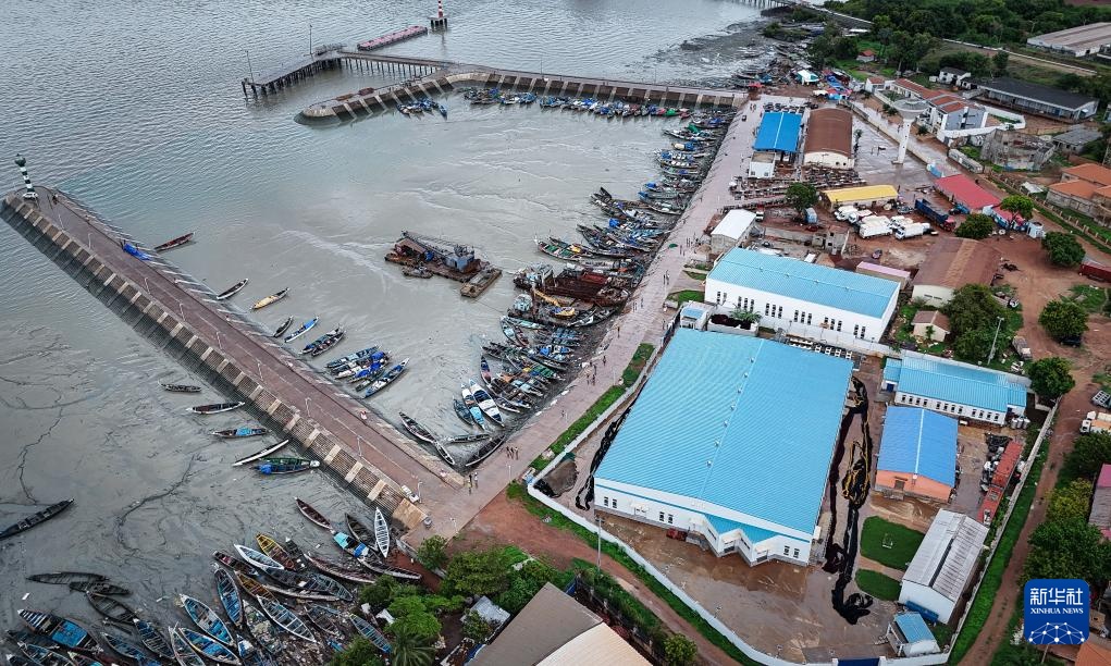 这是7月10日在几内亚比绍首都比绍拍摄的板丁渔业码头一隅(无人机照片)。