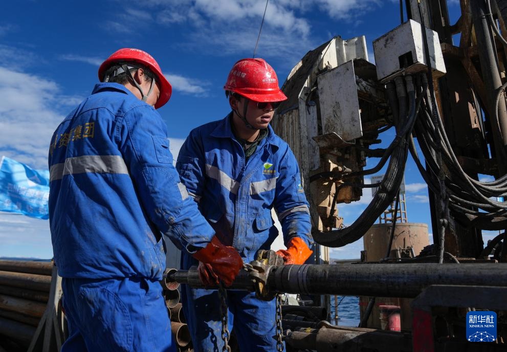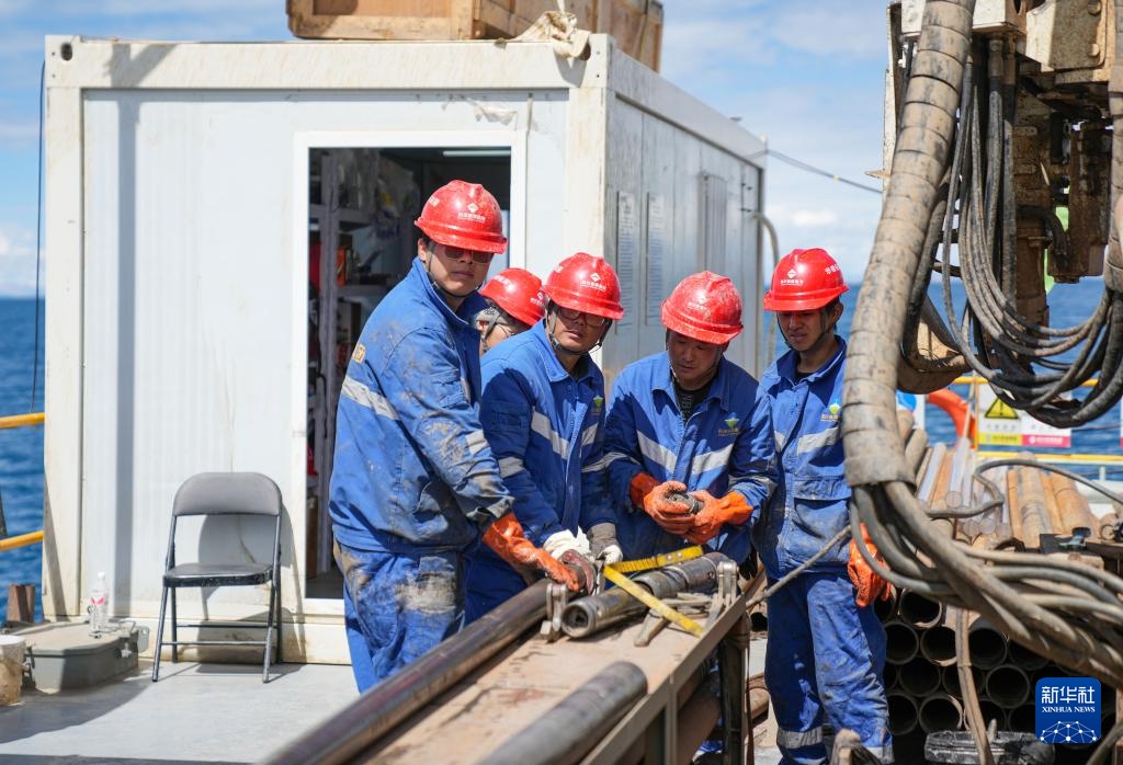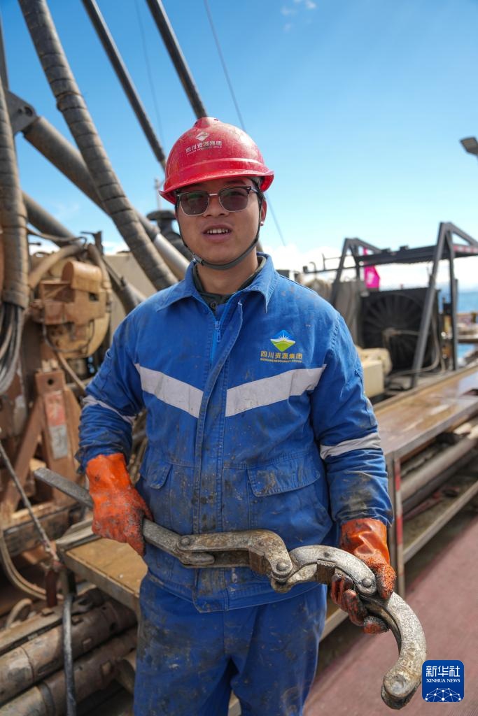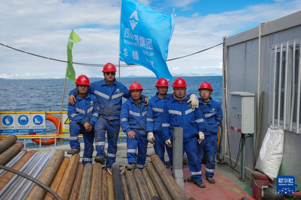 担任这次湖泊岩芯钻探任务的是四川资源集团华锋钻探队。他们从5月31日入驻科考营地、6月6日钻取第一批湖泊岩芯样品以来一直奋战至今。这群平均年龄31岁的钻探队员常年工作在高海拔地区,有着丰富的钻探经验,此次钻探是他们第一次进行高海拔湖泊钻探。目前纳木错钻探深度突破400米,达到国内高海拔深水大湖的钻探新纪录。这些钻探队员在见证奇迹,也在创造历史。