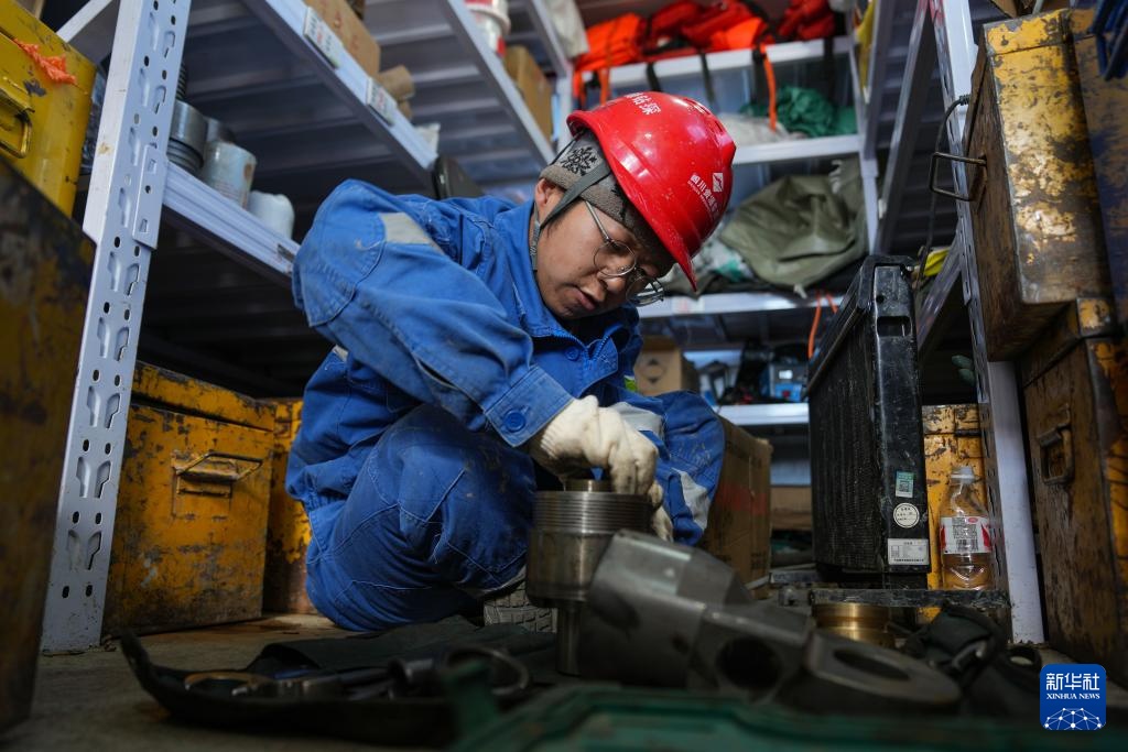 7月11日,钻工刘文平在准备拆卸钻杆。
