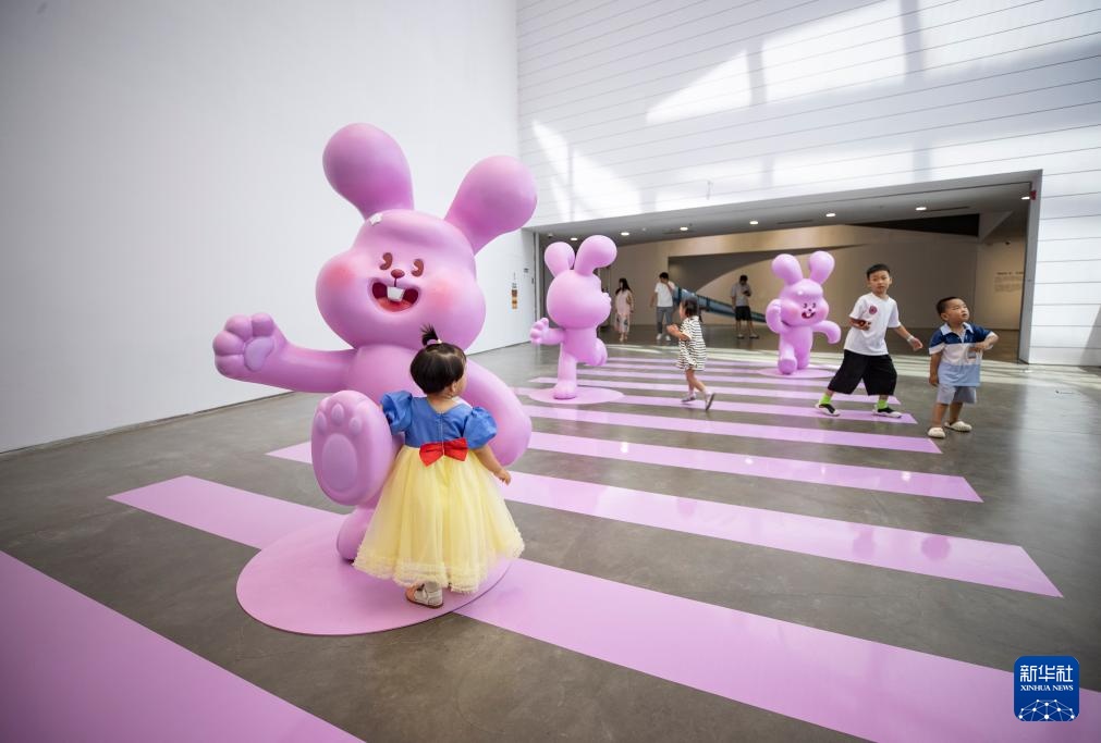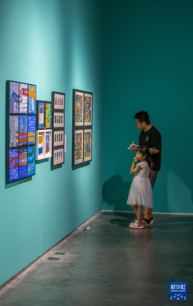 7月13日,小朋友在宁夏银川当代美术馆参观游玩。