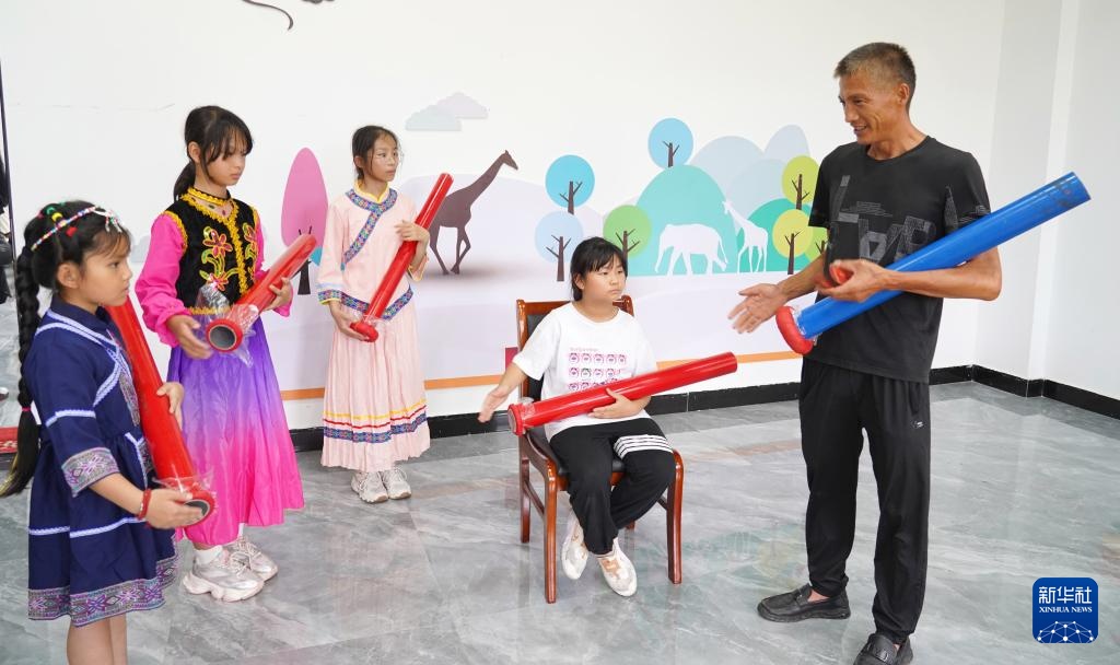 7月12日,孩子们在浙江省温岭市滨海镇决心村文化礼堂学习传统曲艺。