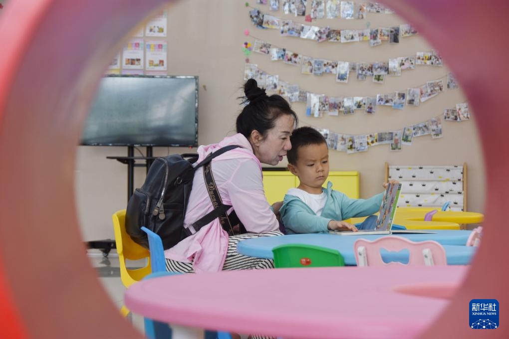 7月13日,在云南省红河哈尼族彝族自治州蒙自市,家长带孩子在红河州青少年宫儿童图书馆阅读儿童读物。