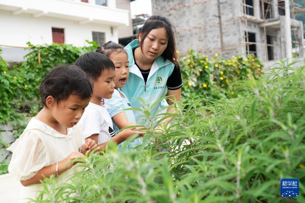 7月13日,一名西南大学植物保护学院的学生在重庆市北碚区歇马街道虎头村开展自然生态体验活动时,为孩子们讲解自然知识。