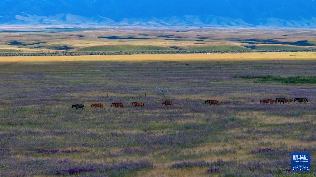 雪山脚下,草场茵茵,骏马驰骋。昭苏县位于新疆伊犁哈萨克自治州西南部一个群山环抱的高位山间盆地,这里气候湿润、水草丰茂,自古盛产良马,有“天马故乡”的美誉。
