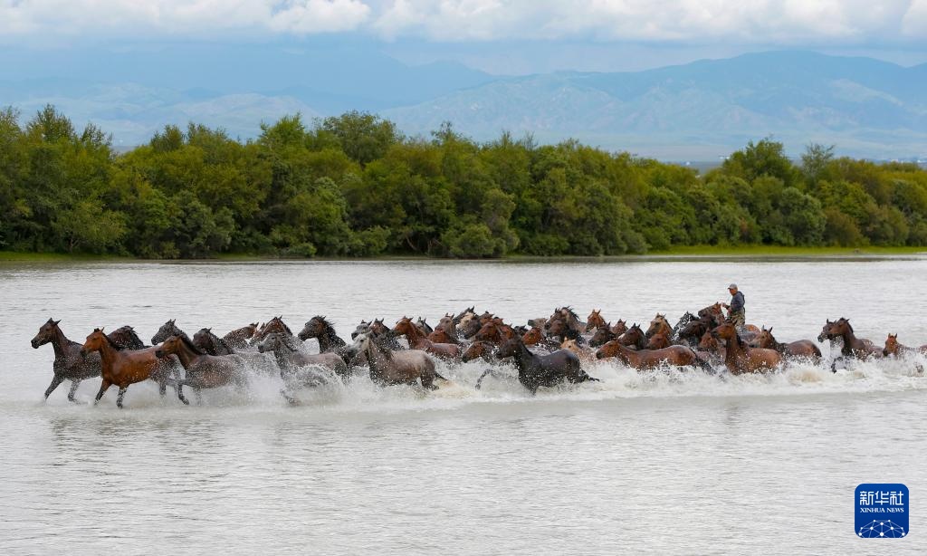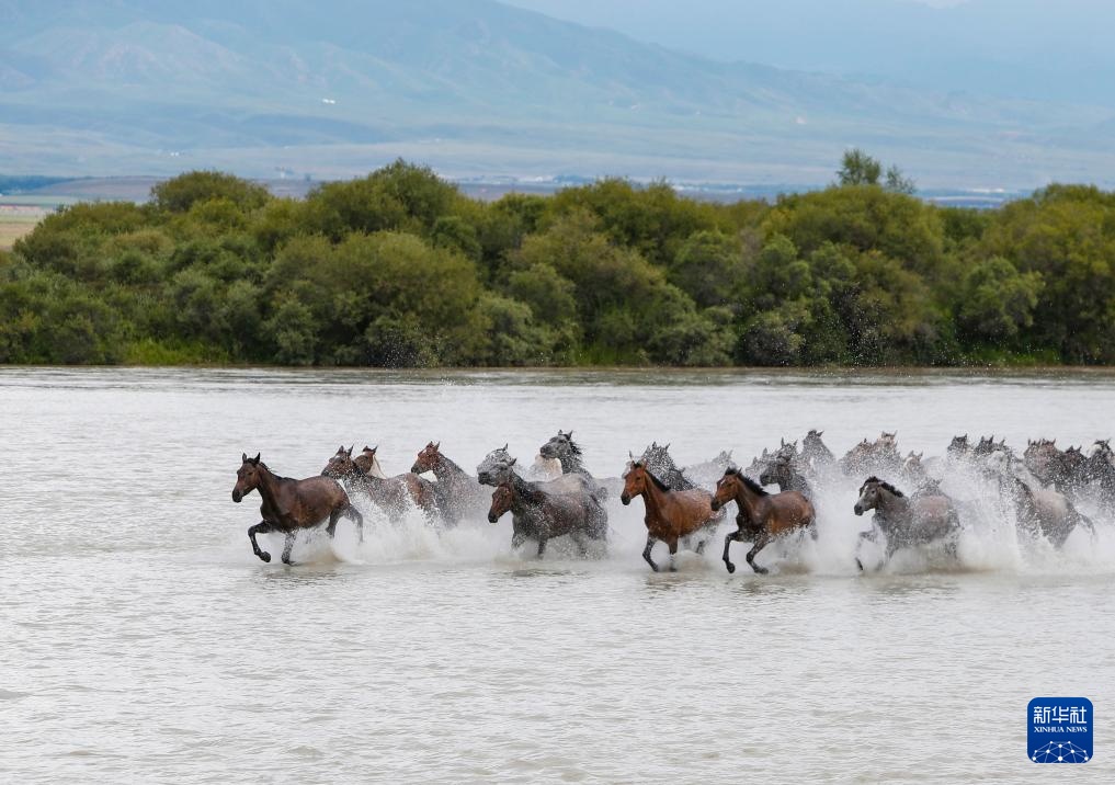 这是7月11日在新疆昭苏湿地公园拍摄的天马浴河。