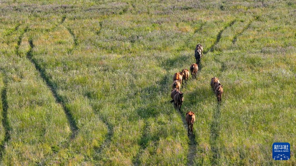 这是7月7日在新疆昭苏拍摄的马匹(无人机照片)。