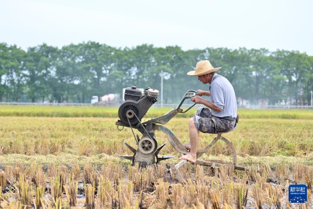 时下,多地早稻陆续成熟,当地农民抢收早稻、翻耕稻田、抢插晚稻。