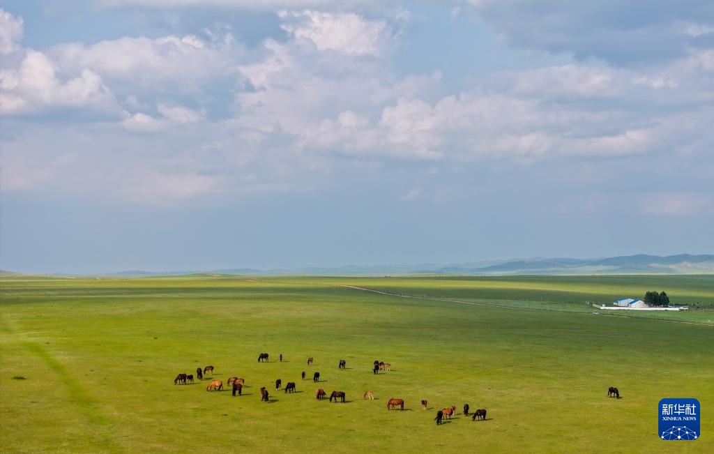 7月13日拍摄的锡林郭勒盟白音锡勒牧场夏日风光(无人机照片)。