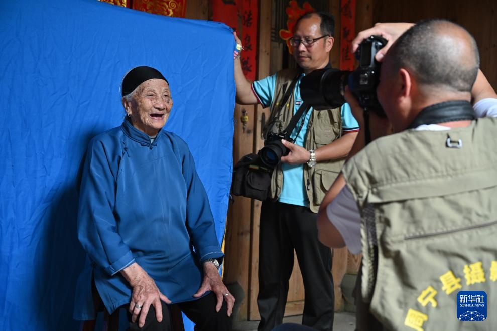 7月13日,周宁县敬老摄影志愿者在李墩镇楼坪村一92岁老人家中为老人拍摄肖像照。