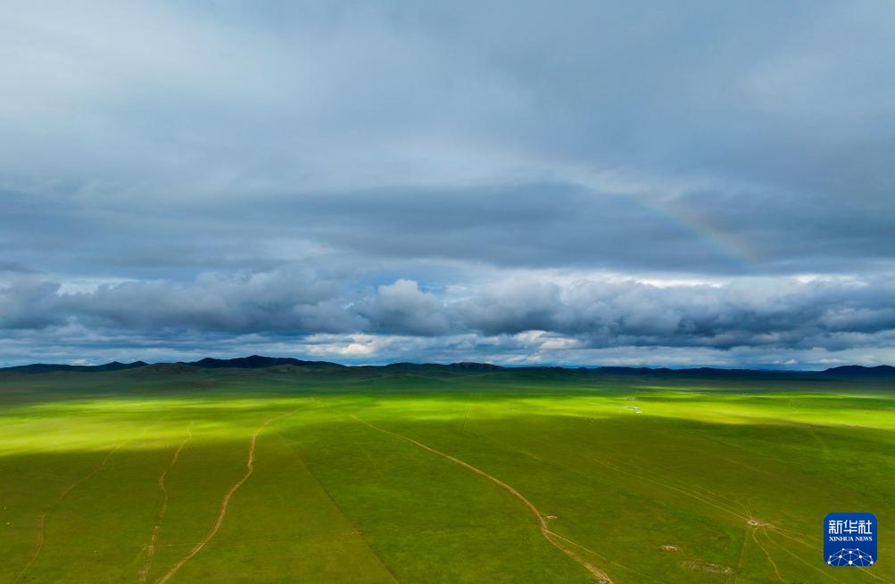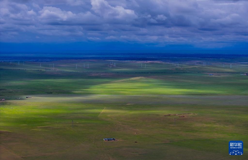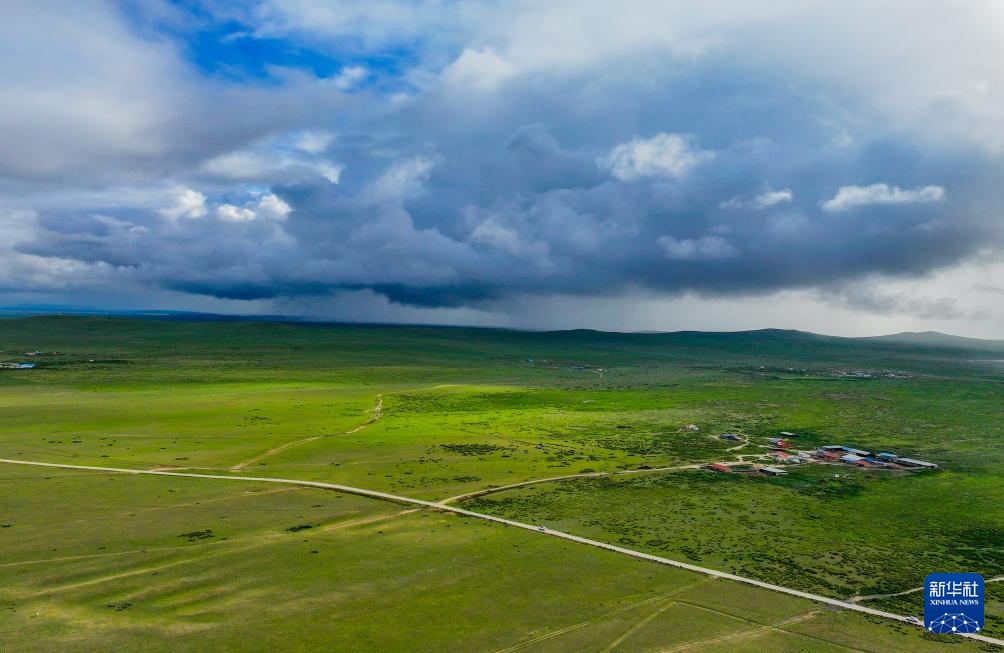 这是7月16日在内蒙古锡林郭勒盟拍摄的西乌珠穆沁草原风光(无人机照片)。
