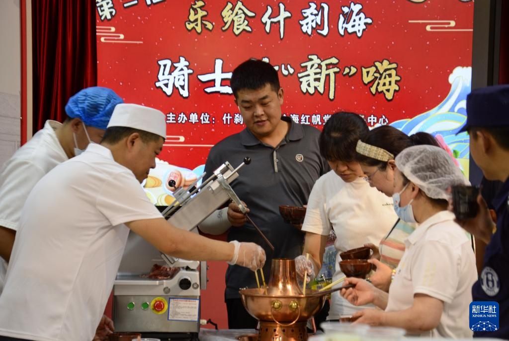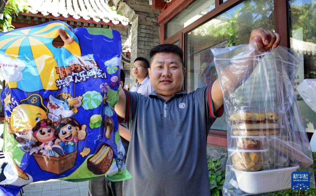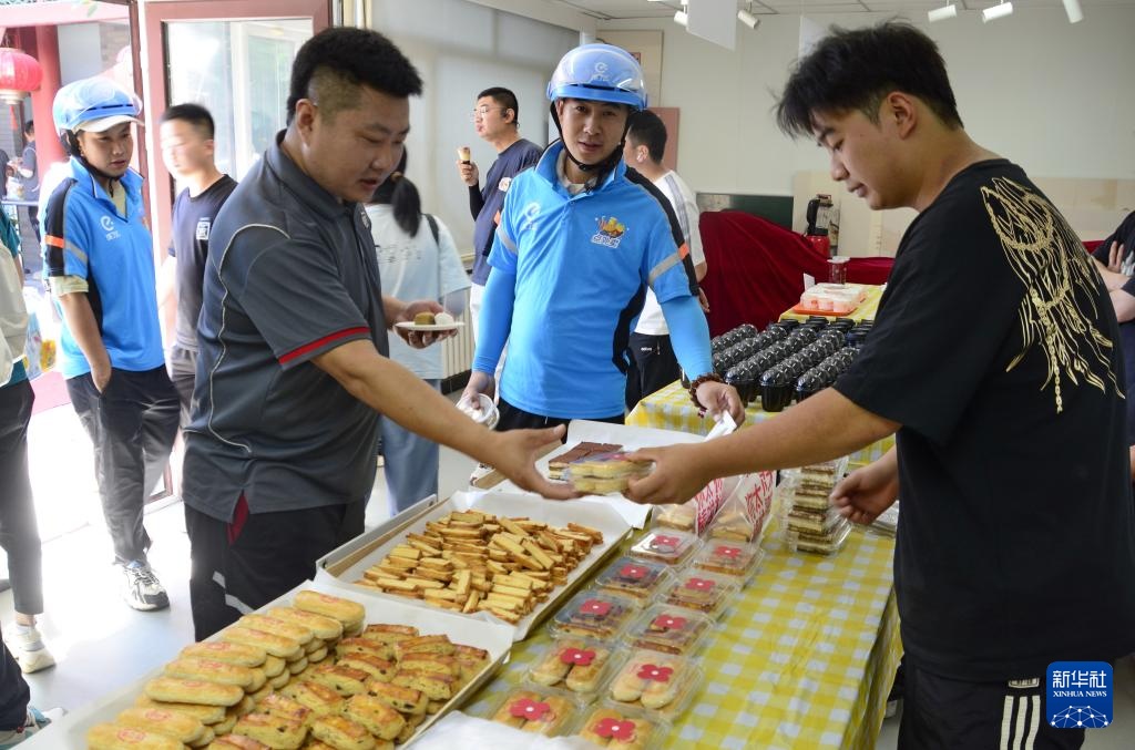 当日,北京市西城区什刹海街道举办“小哥美食节”,辖区内的老字号美食企业为快递、外卖、环保、物业等户外工作者提供酸梅汤等清凉饮料以及数十种特色小吃,还举办了集体生日会、免费体检、互动游戏等活动,为户外工作者带来盛夏的关爱。