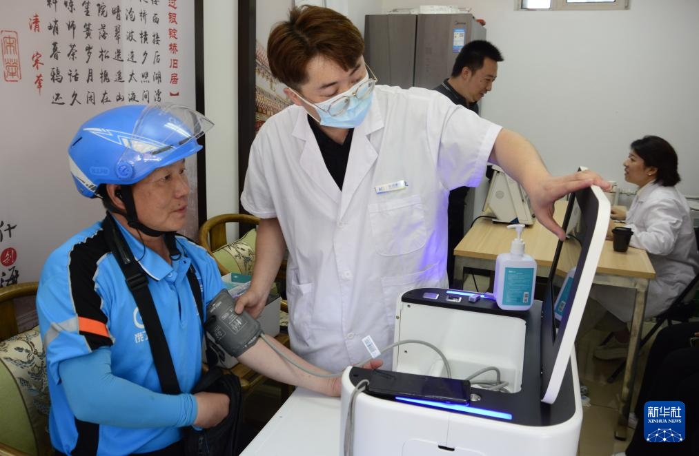 7月17日,什刹海街道辖区内的医疗单位为外卖员免费体检。