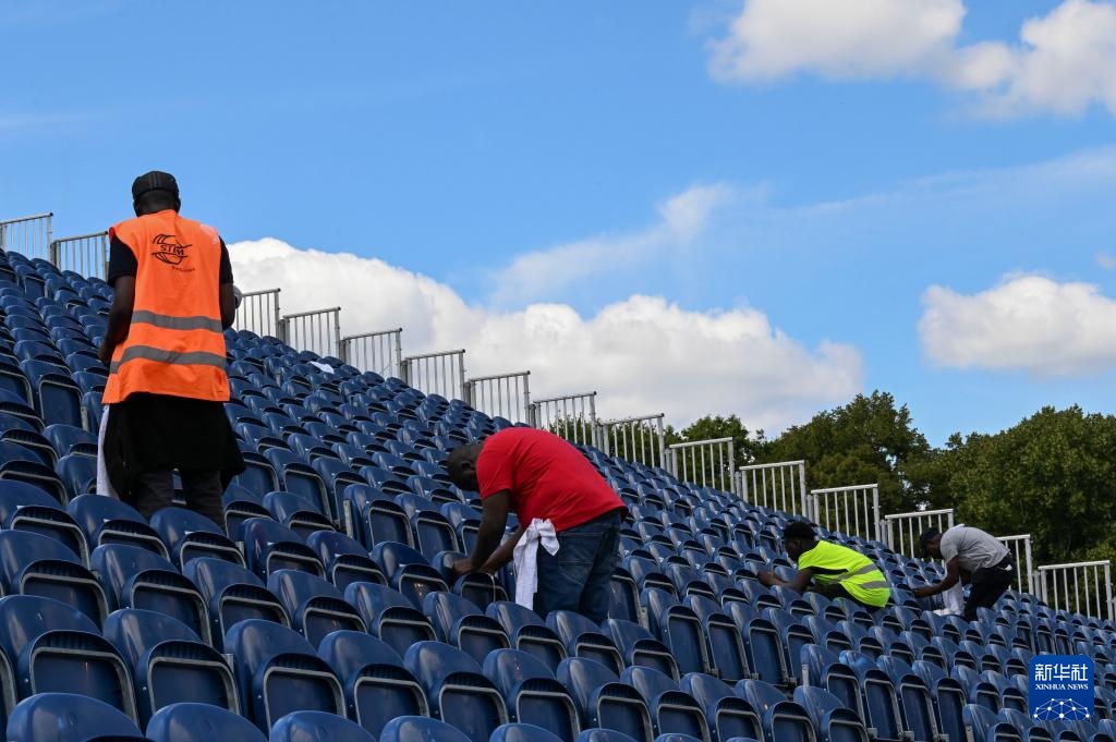 这是7月17日在凡尔赛宫赛区拍摄的备赛区。