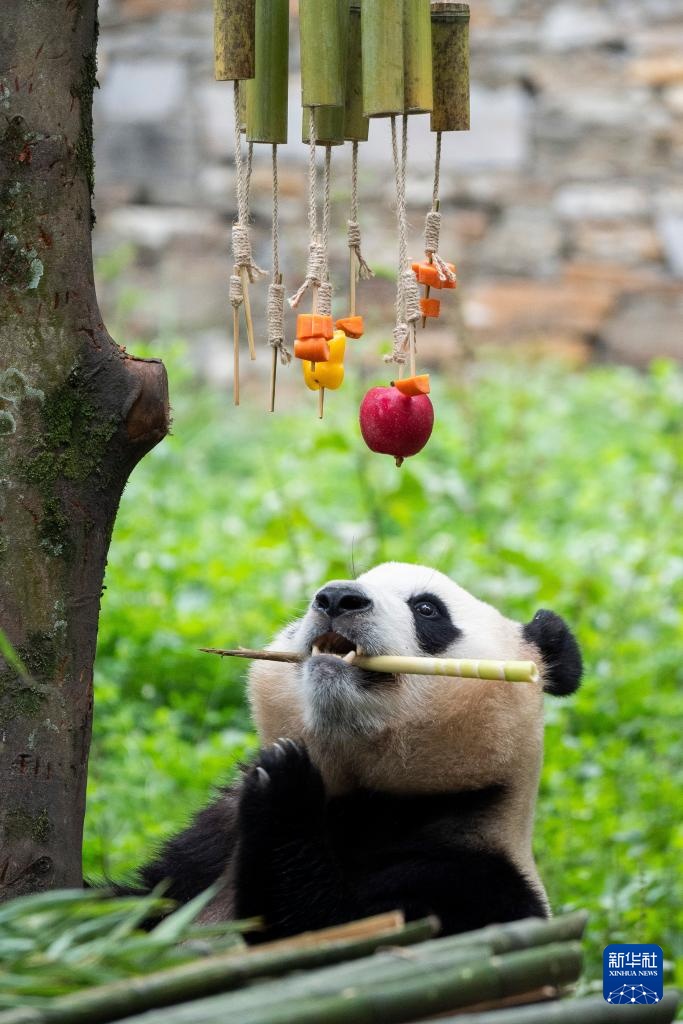当日,中国大熊猫保护研究中心主办的“‘食’光不语 成长有迹”大熊猫生日季丰容活动在卧龙神树坪基地启动。饲养员们为近期过生日的大熊猫们精心准备了胡萝卜串、西瓜等食物丰容。每年的7至9月,是圈养大熊猫的集中产崽季,也是大熊猫的生日季,备受公众关注。为了给圈养大熊猫提供更好福利,熊猫中心成立了专门的大熊猫丰容专家团队,针对不同年龄阶段的大熊猫制定丰容计划。
