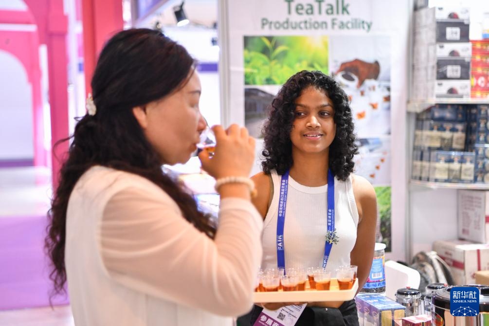 7月23日,一名女士在第八届中国—南亚博览会南亚馆品尝斯里兰卡红茶。