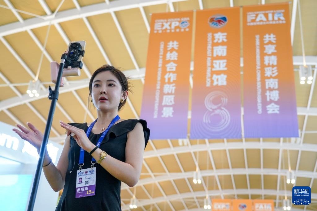 7月23日,参展商在东南亚馆进行直播。