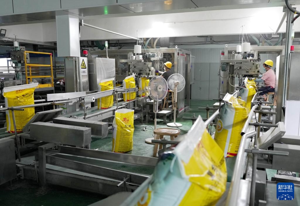 7月23日,工人在河北省隆化县一家化肥企业的生产车间工作。