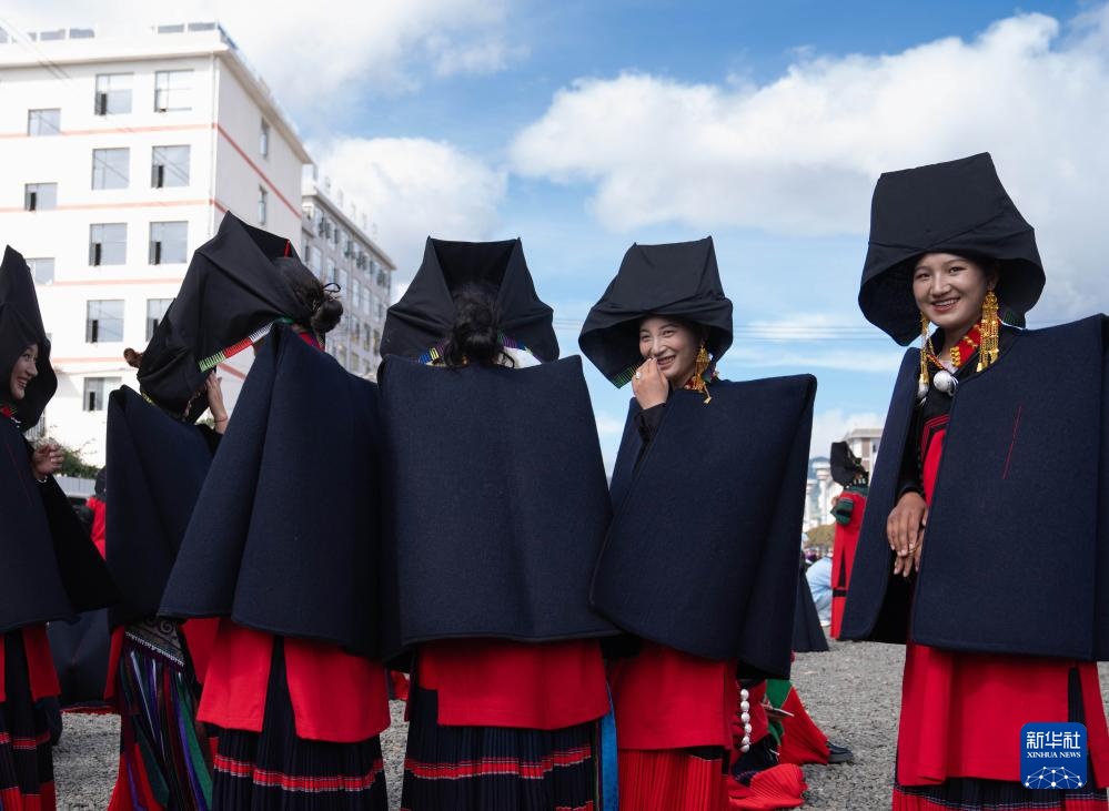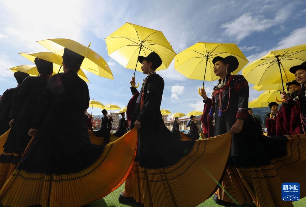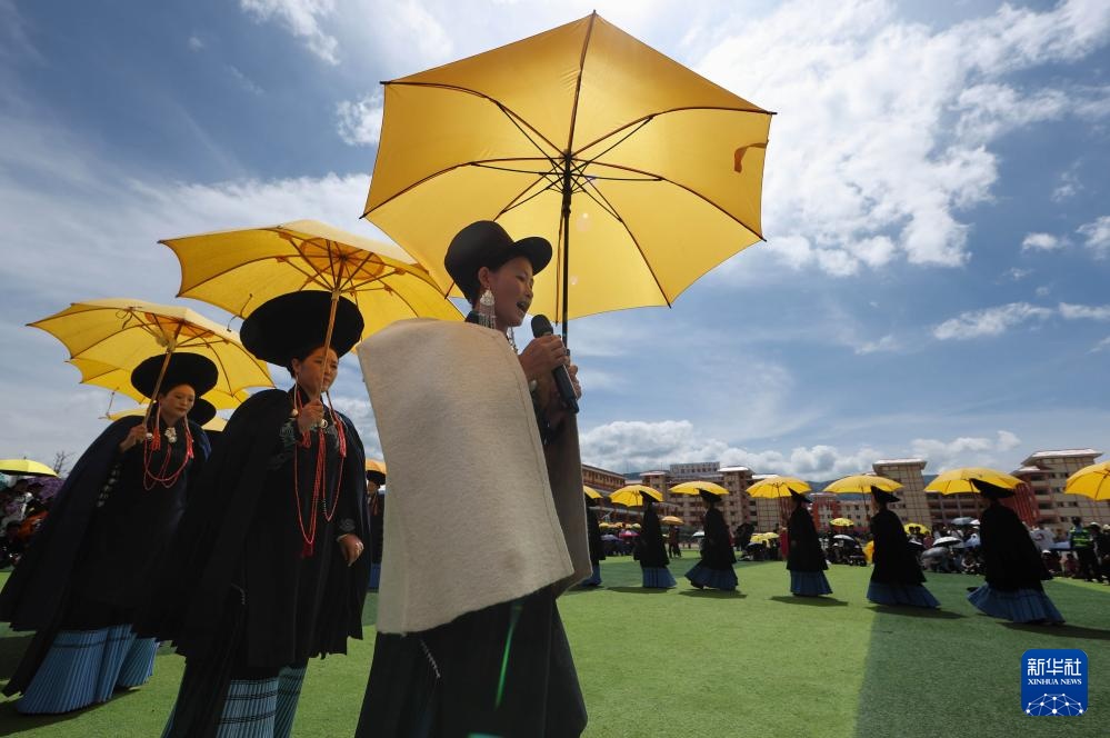 7月24日,一队彝族少女参加朵洛荷表演及传统选美。