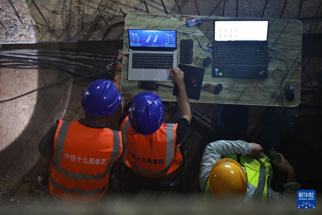 7月24日,建设者在监控平台上观看转体过程。