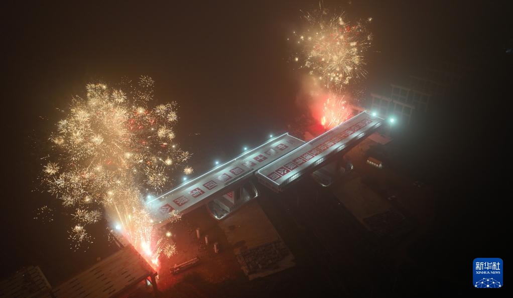 7月24日,小户尚公铁立交桥转体成功(无人机照片)。