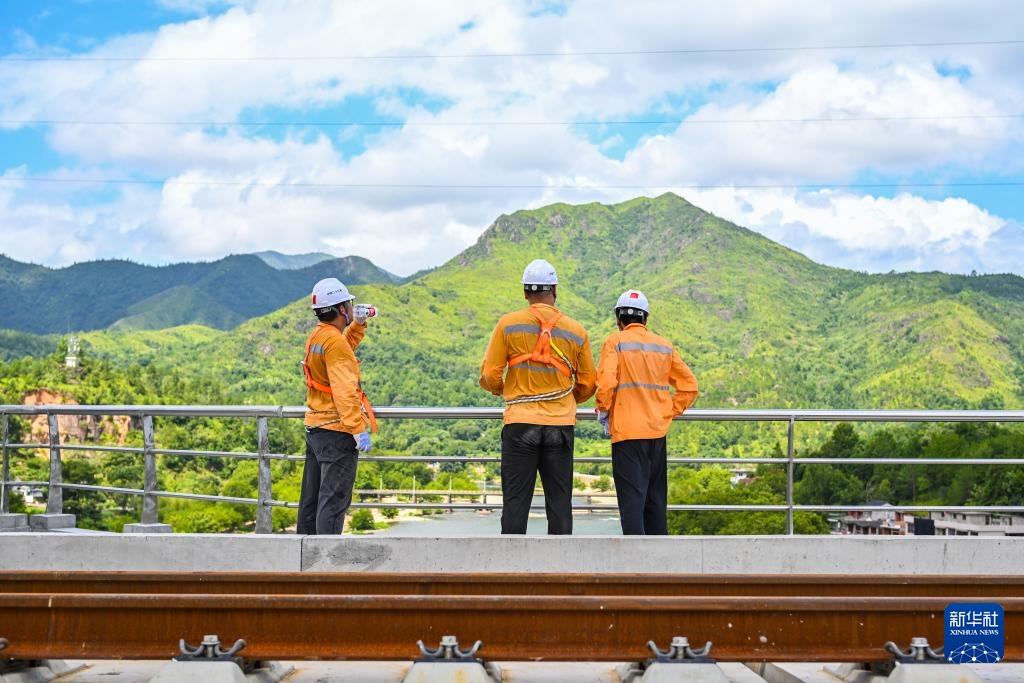 7月24日,宁波工务段防洪检查小组的铁路工人对杭温高铁沿线进行巡检。