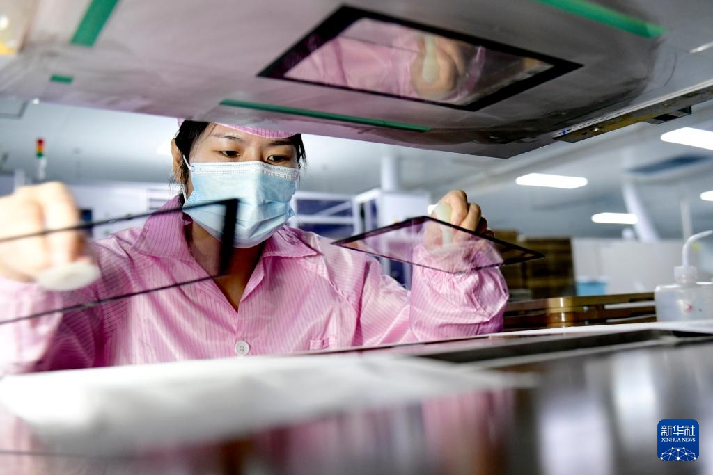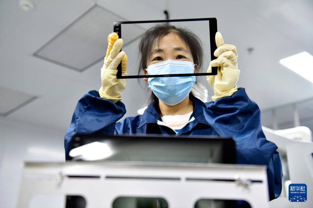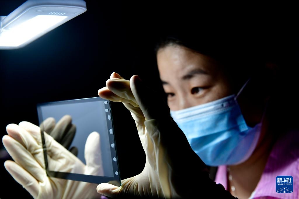 7月24日,在山东友创光电科技有限公司,工作人员查验液晶显示面板。