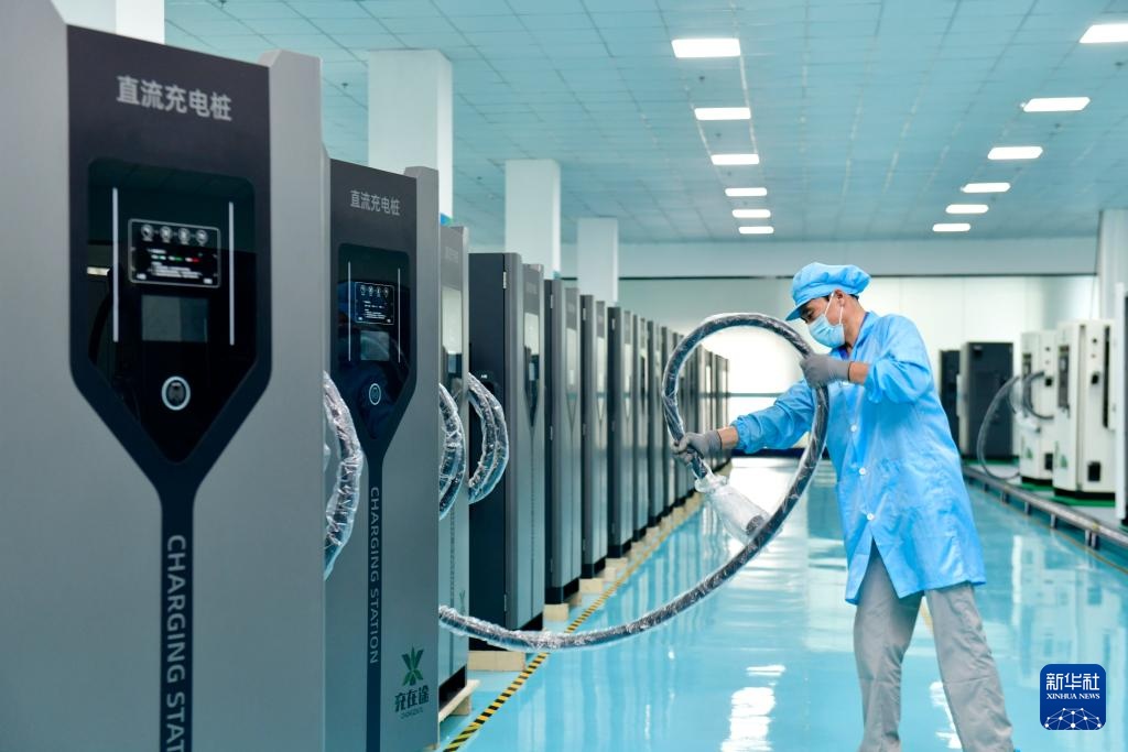 7月24日,在山东友豪能源科技有限公司,工作人员整理充电桩。