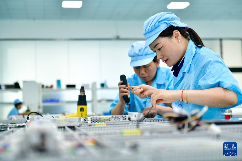 7月24日,在山东友豪能源科技有限公司,工作人员装配充电桩。