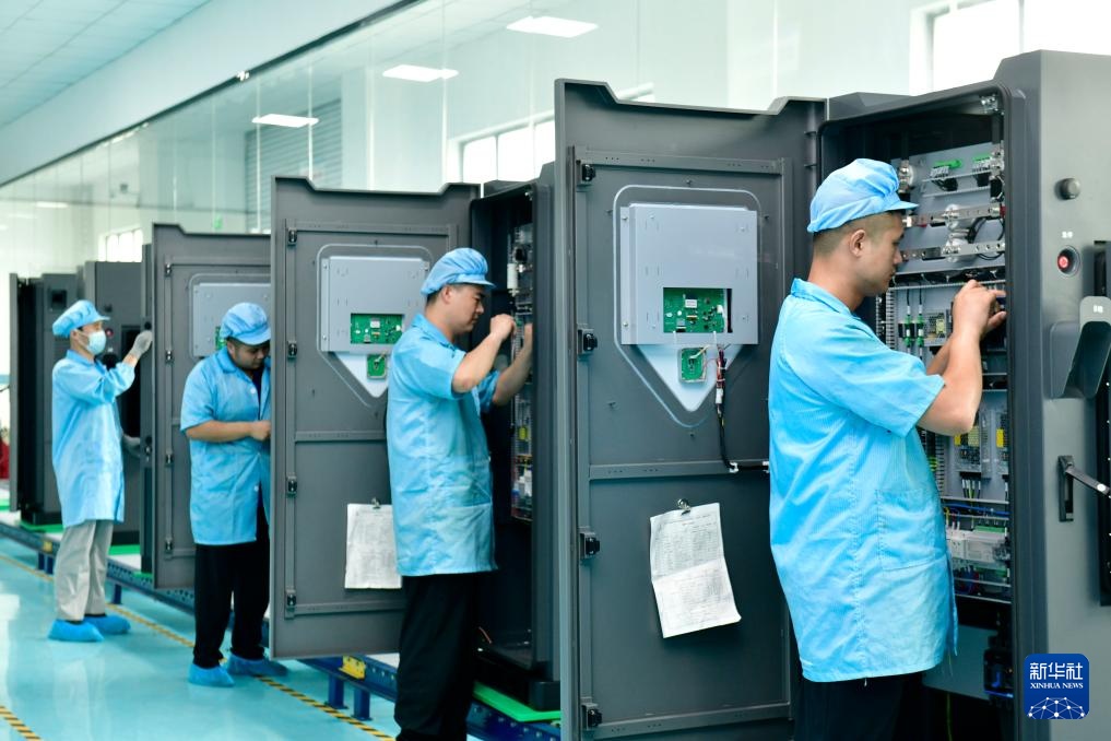 7月24日,在山东友豪能源科技有限公司,工作人员装配充电桩机箱。