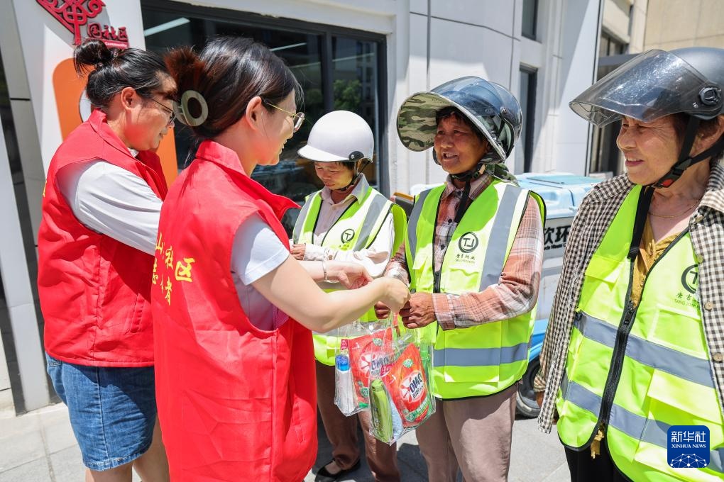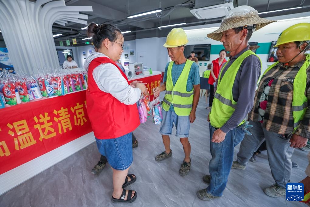 当日,浙江省湖州市吴兴区道场乡总工会在湖山府社区工会驿站开展“高温送清凉”关爱户外劳动者公益活动。近期持续高温,湖州市吴兴区道场乡总工会为建筑工人、环卫工人等准备了1000余份清凉礼包。