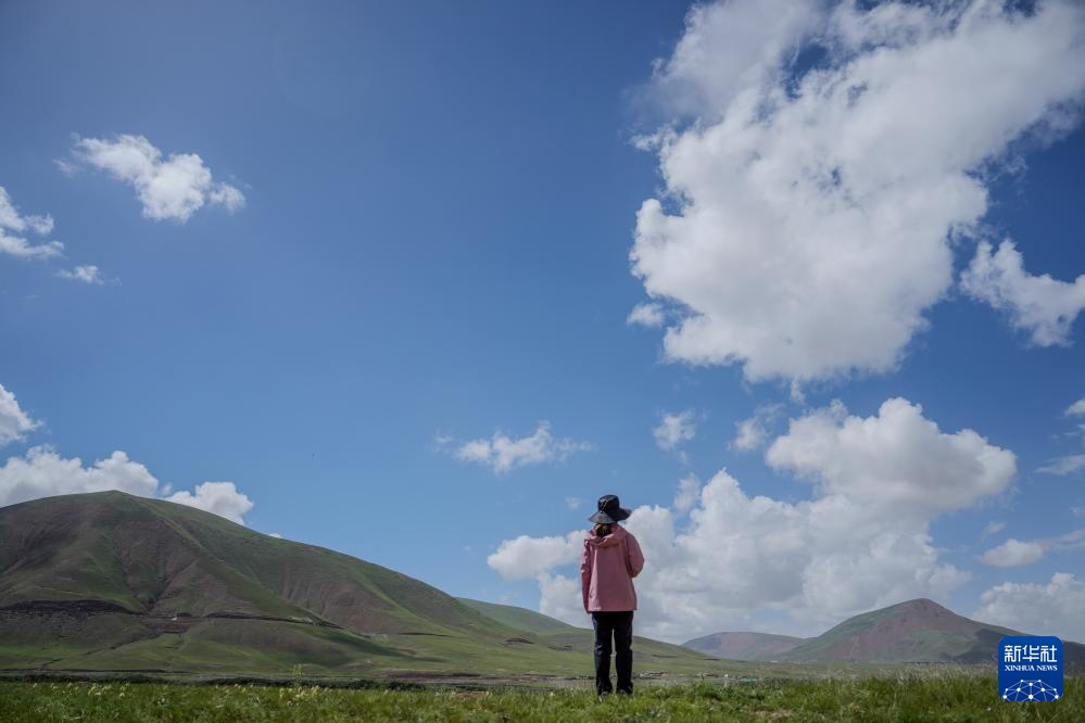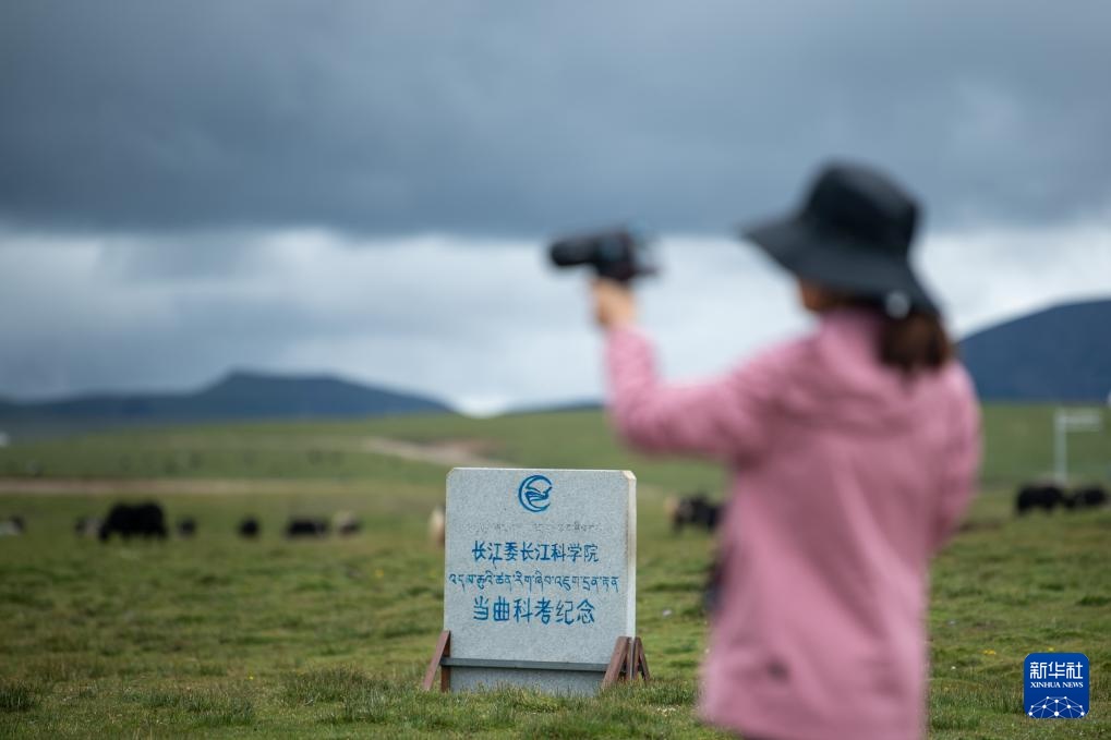 7月23日,长江科学院河流研究所的刘玉娇站在聂洽曲的草滩上。