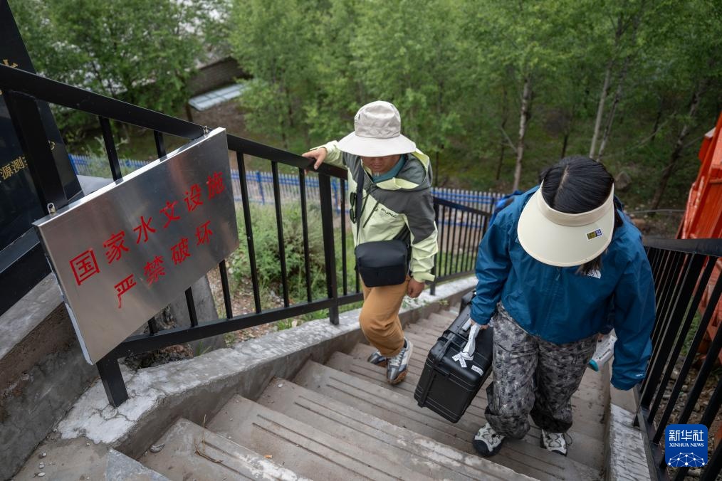 7月21日,长江科学院水资源综合管理研究所的程淑婕(左)在扎曲杂多段测量现场气象条件。