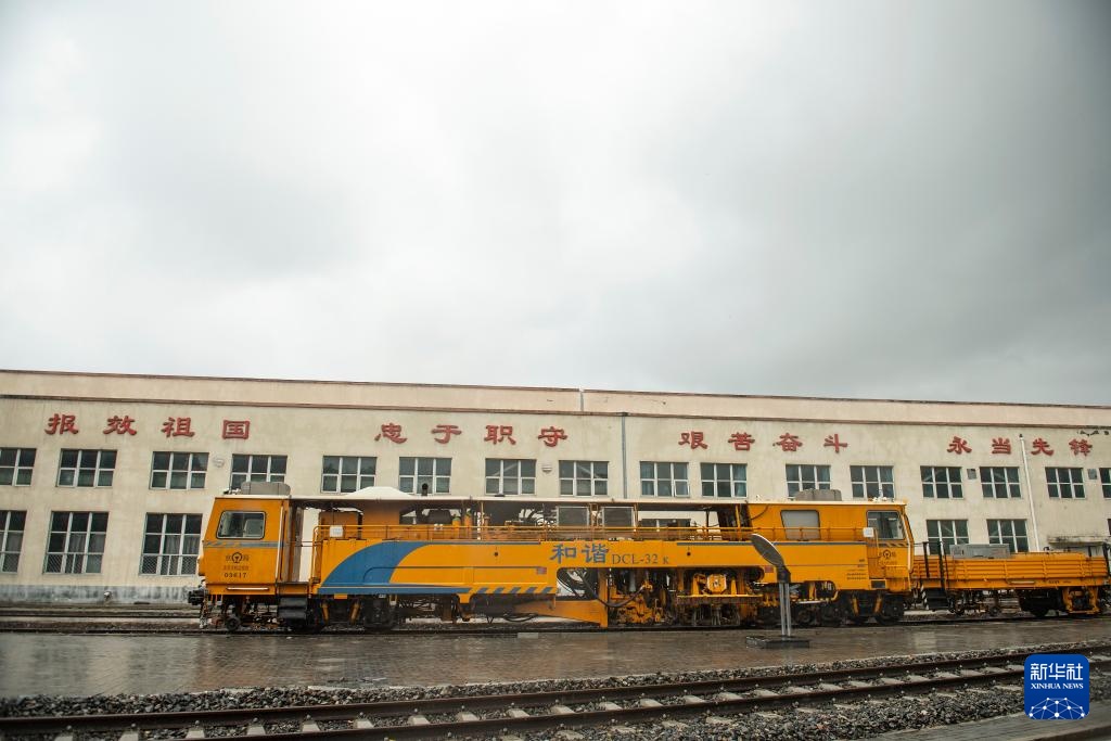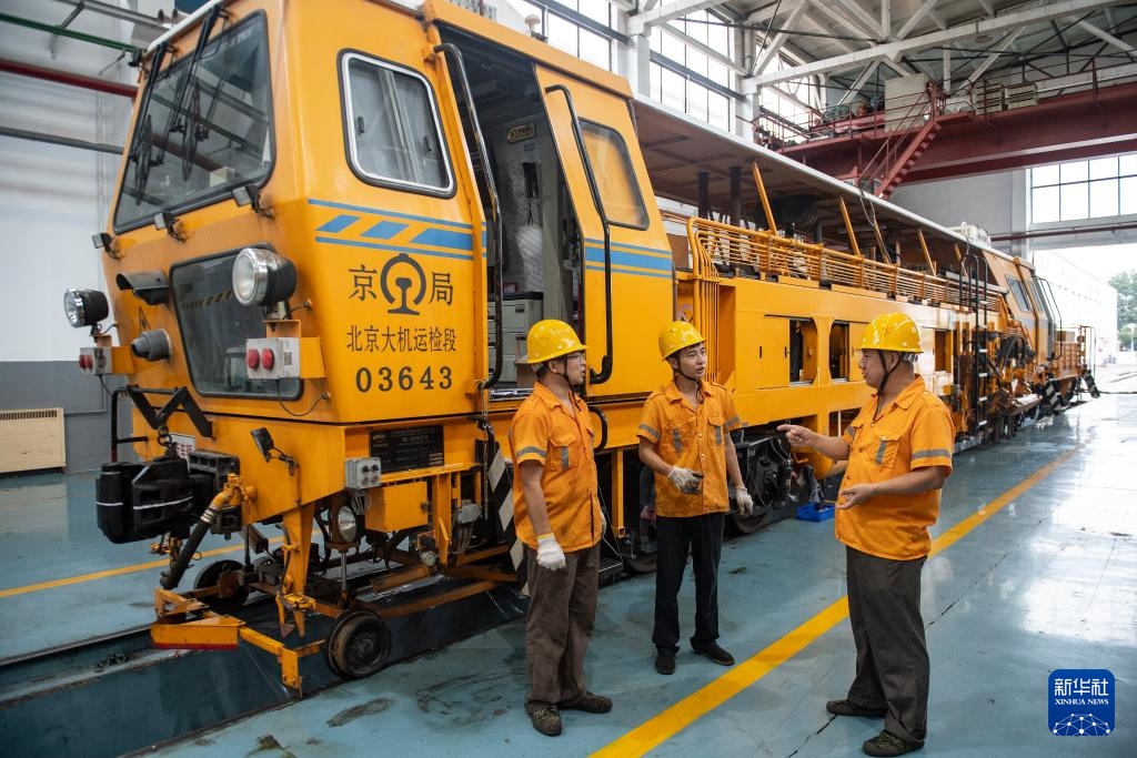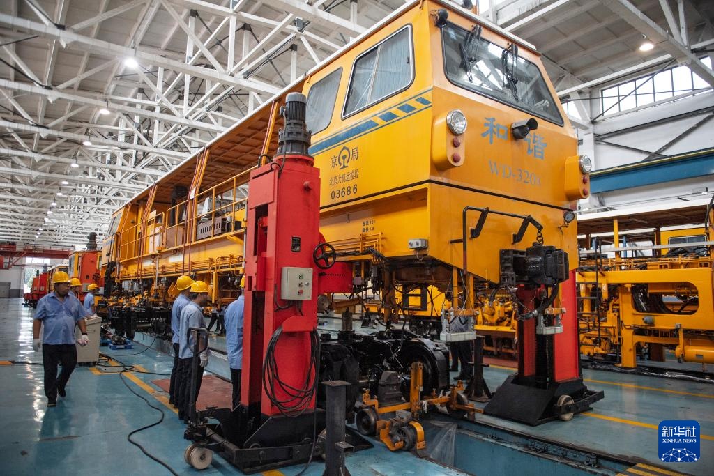 7月25日,在国铁北京局北京大型养路机械运用检修段,检修后的大型养路机械在检修基地内进行动态试验。