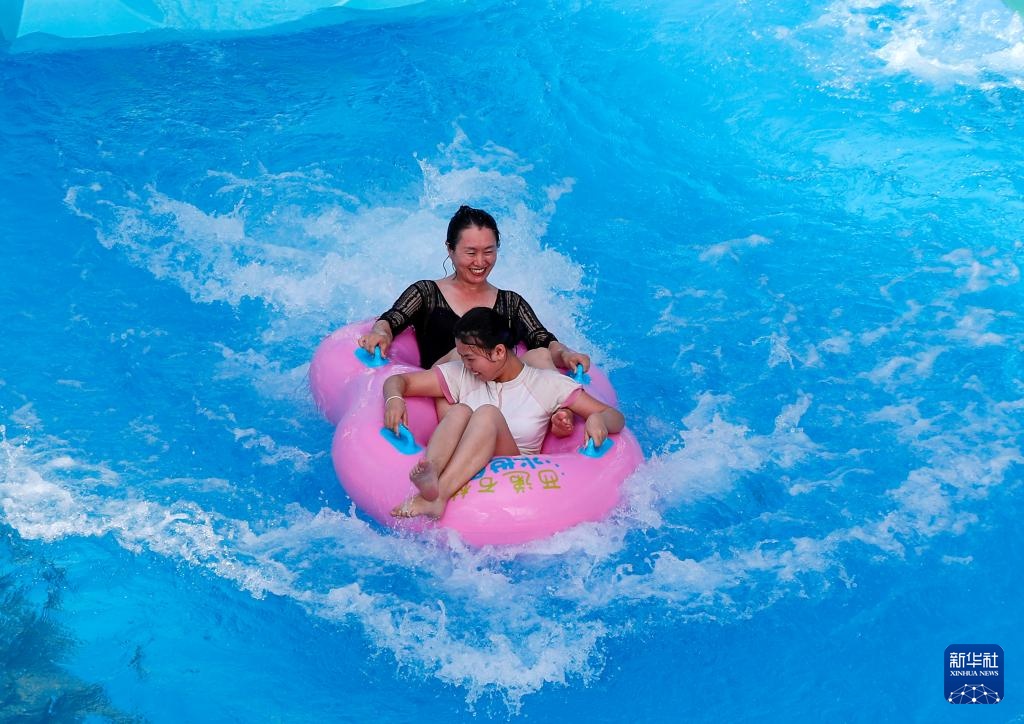 7月25日,游客在黟县西递石林水世界戏水、玩耍。