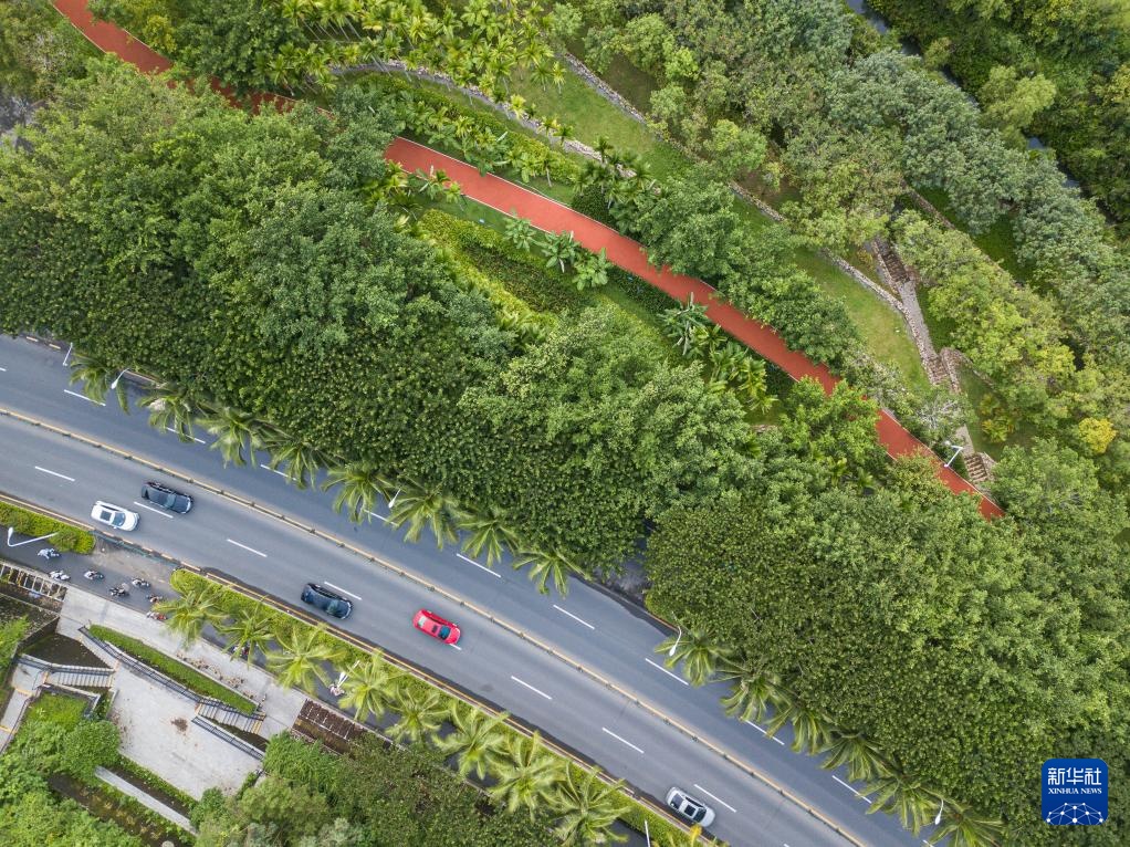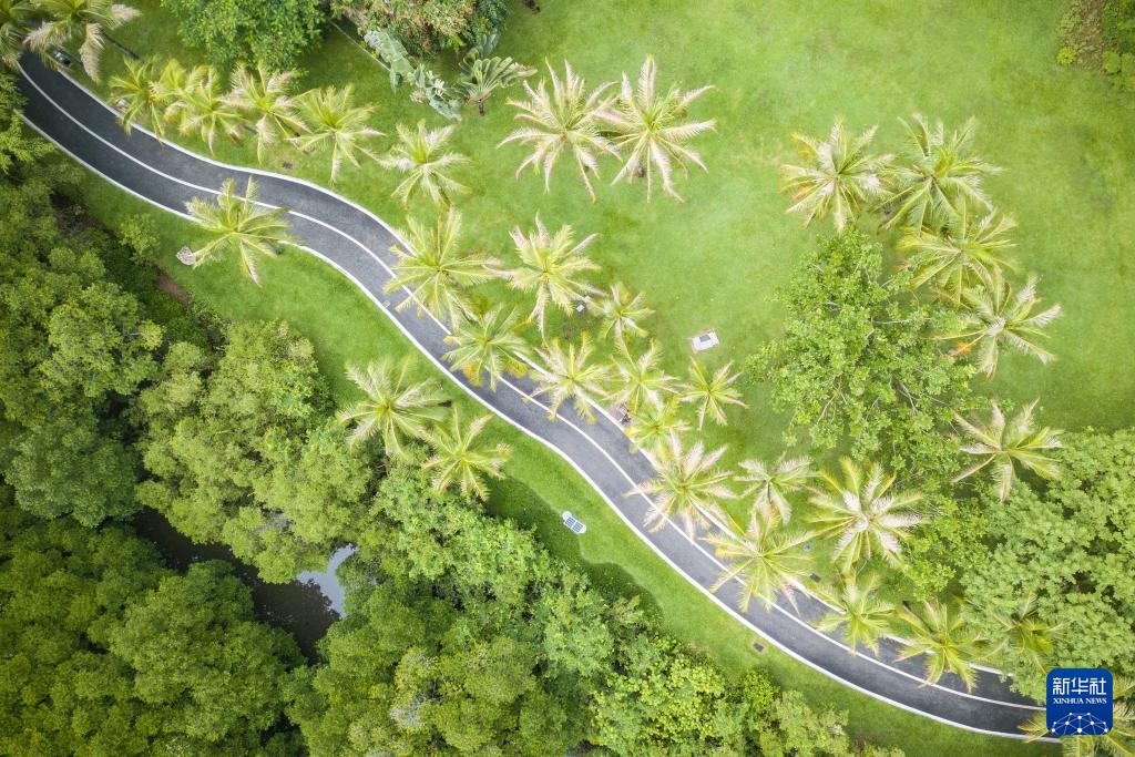 7月22日,游客走在海南省三亚市白鹭公园内(无人机照片)。